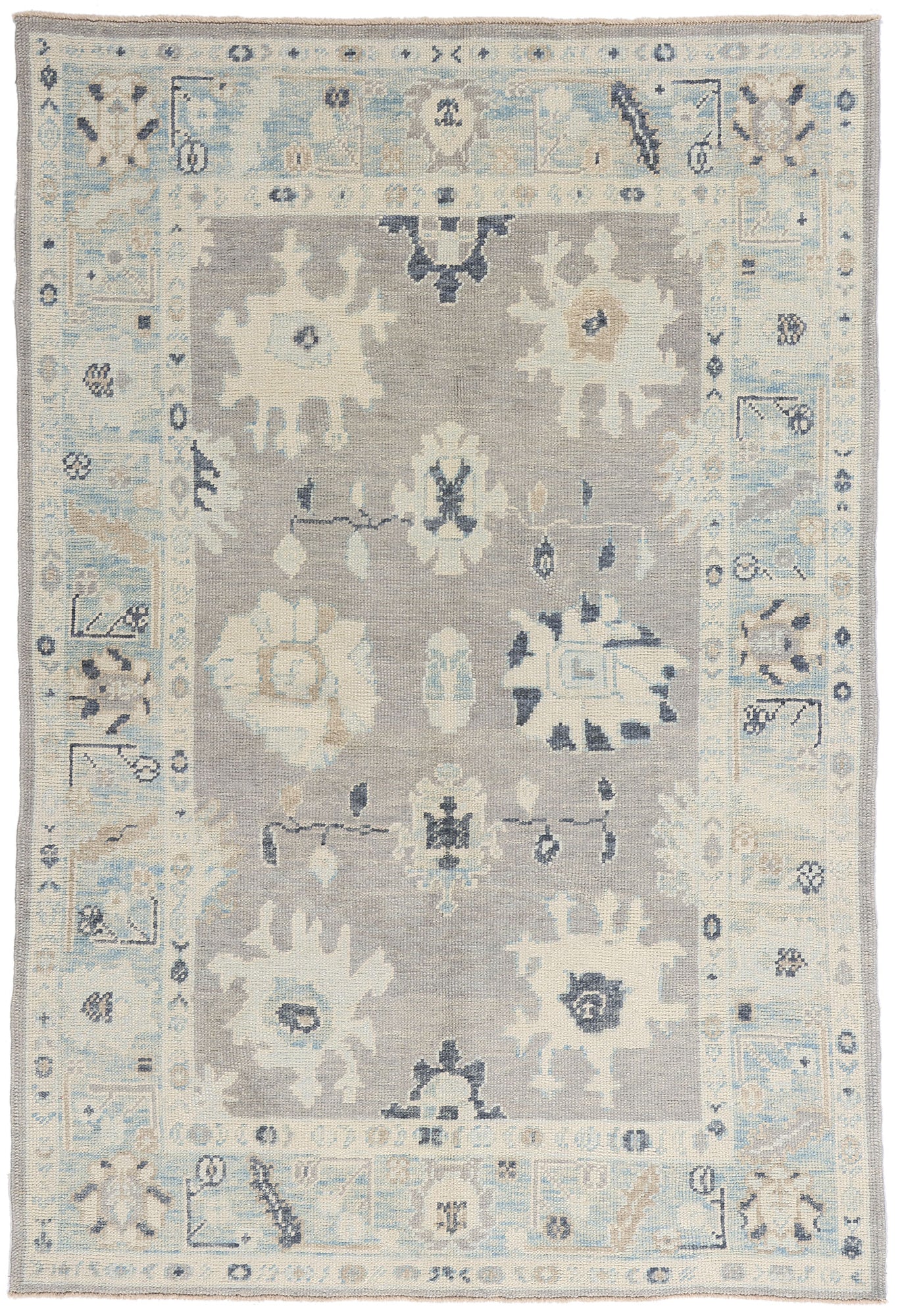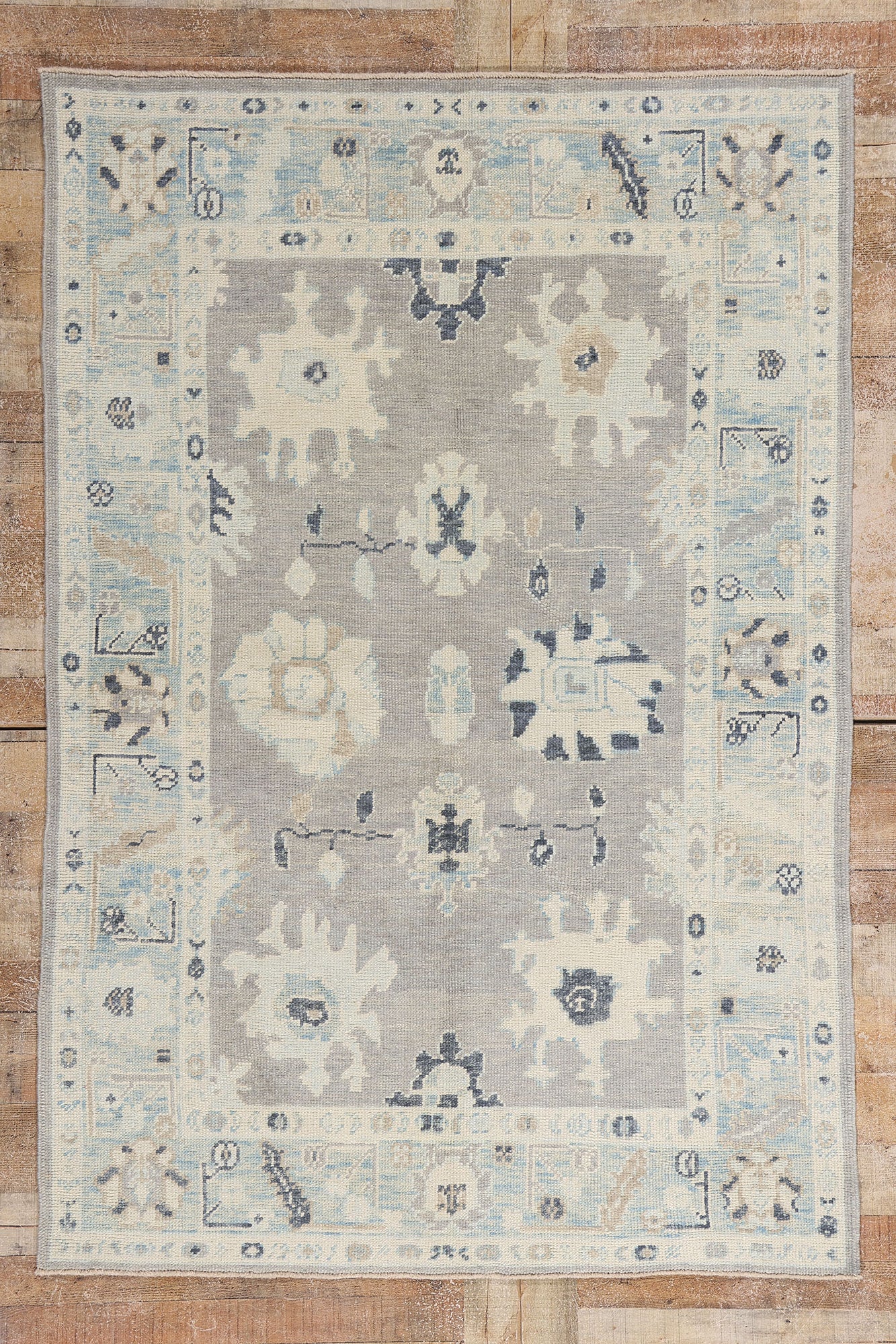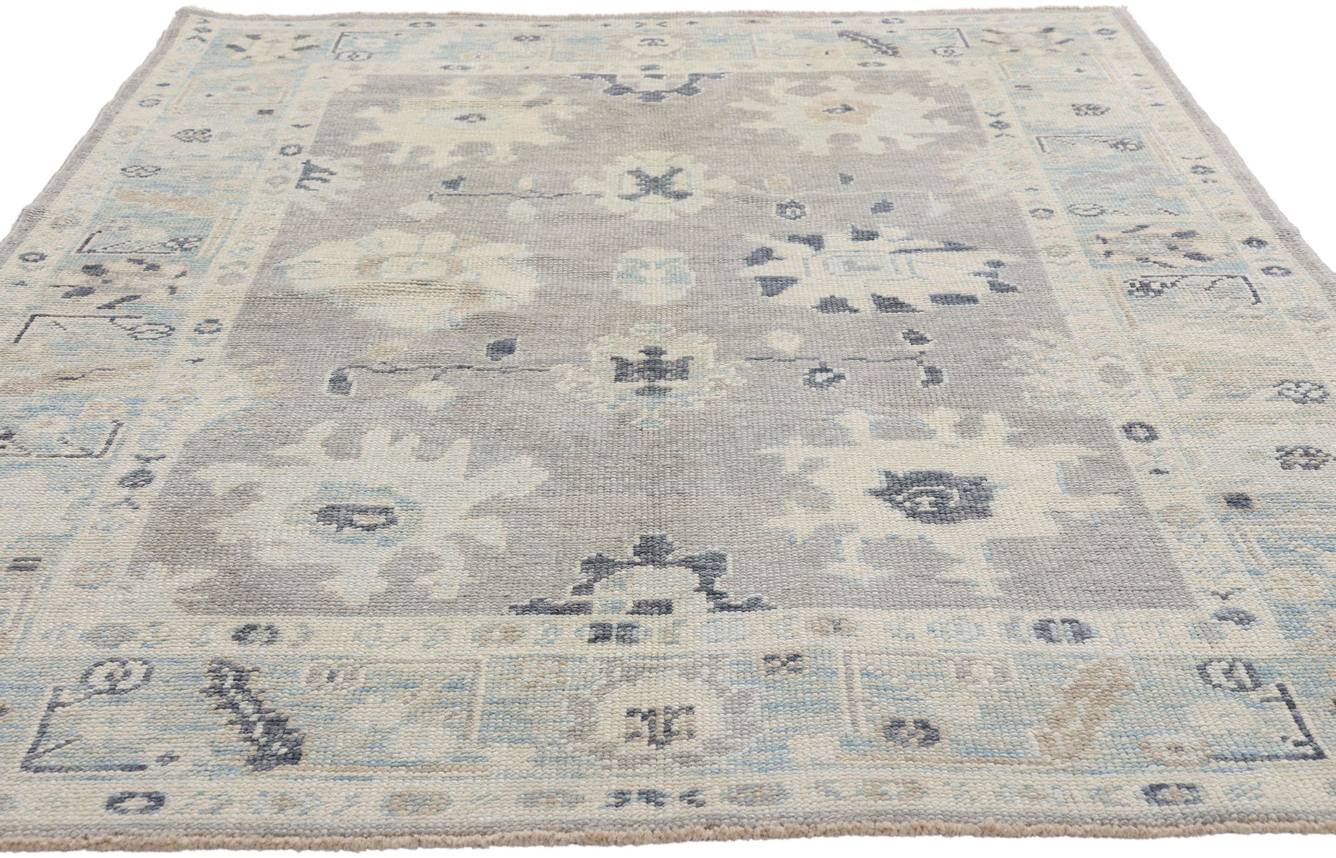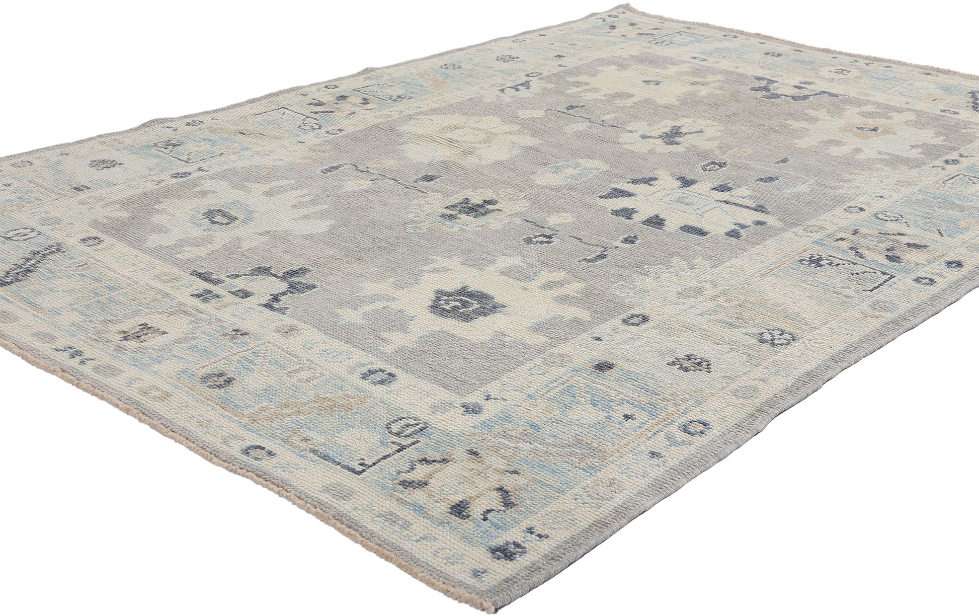 54010 New Modern Gray Turkish Oushak Rug, 04'11 x 07'03.