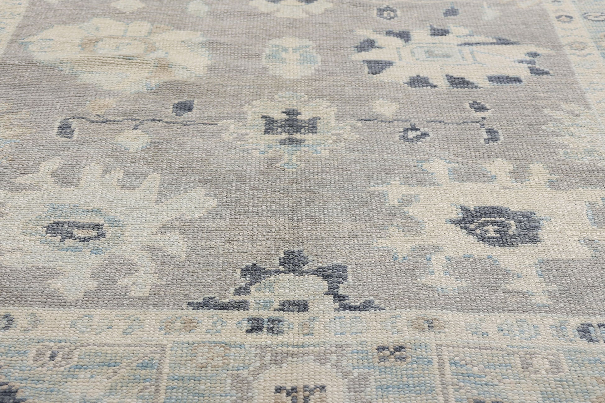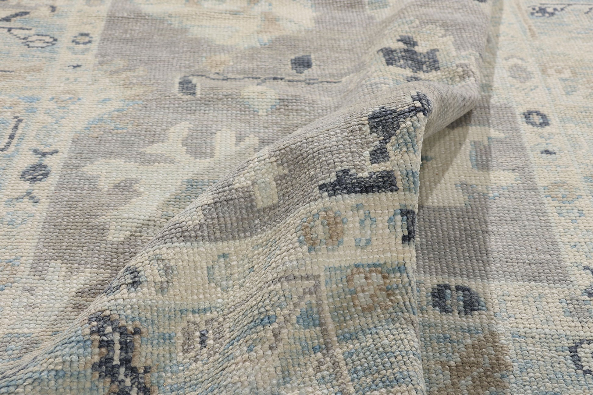 Woven in the shadow of Anatolia’s storied peaks, this hand-knotted wool Turkish Oushak rug is not merely a decorative piece—it is an artifact of contemporary prestige, imbued with ancestral reverence and rarefied elegance. Its luxurious gray field hosts a delicate symphony of stylized lotus blossoms and signature Harshang motifs—designs once reserved for Ottoman palaces and the halls of dignitaries, now revived in a palette that feels at once timeless and modern. Every motif is a whisper from the past, blooming anew in the quiet strength of this serene composition.