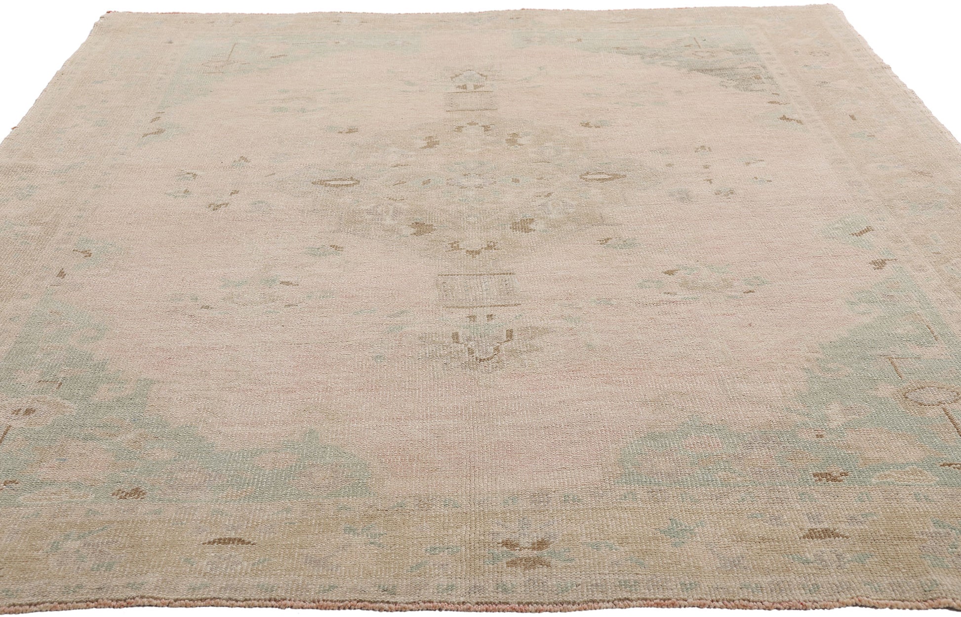53995 Vintage Pink Turkish Oushak Rug, 05'06 x 07'08.
