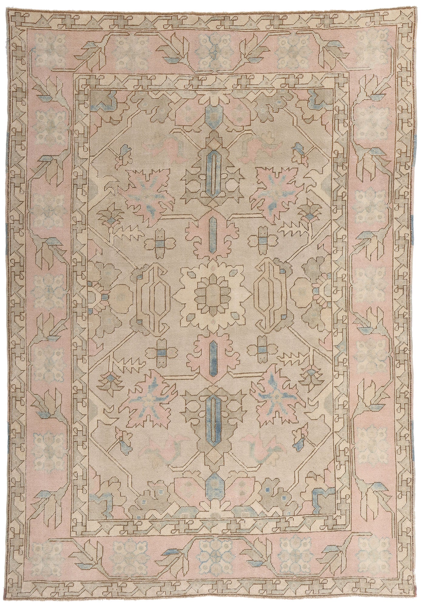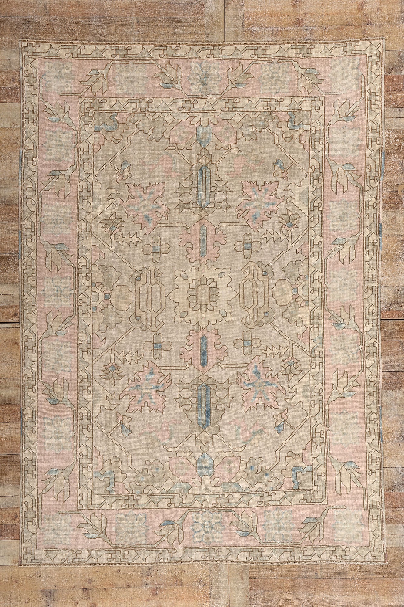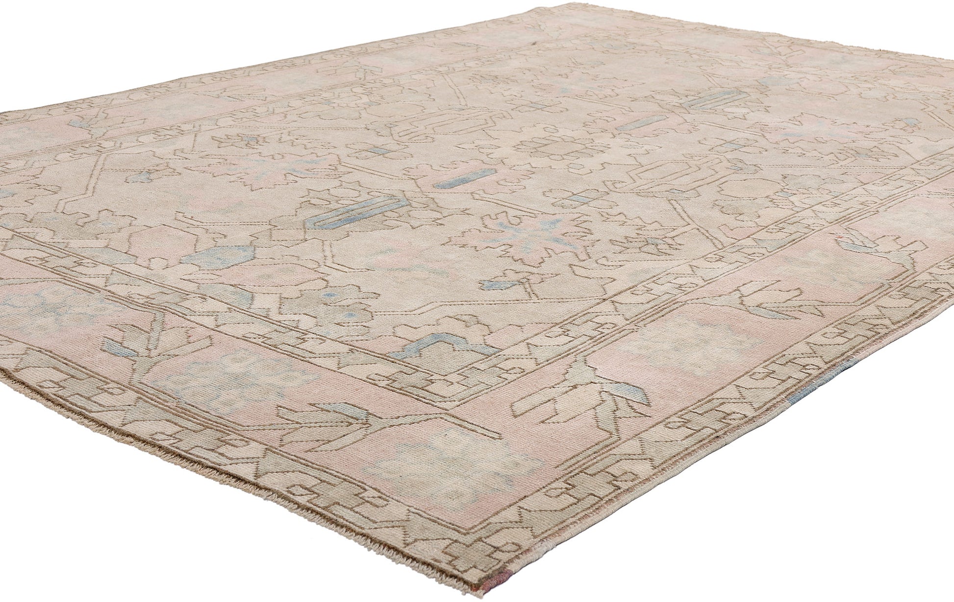 53993 Vintage Pastel Turkish Oushak Rug, 06'03 x 08'10.