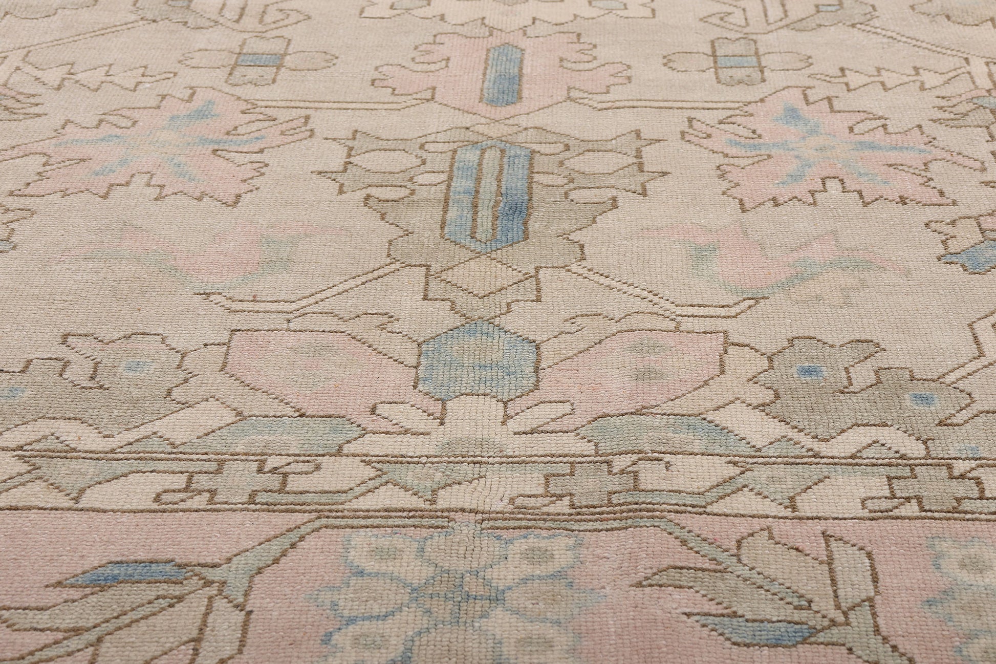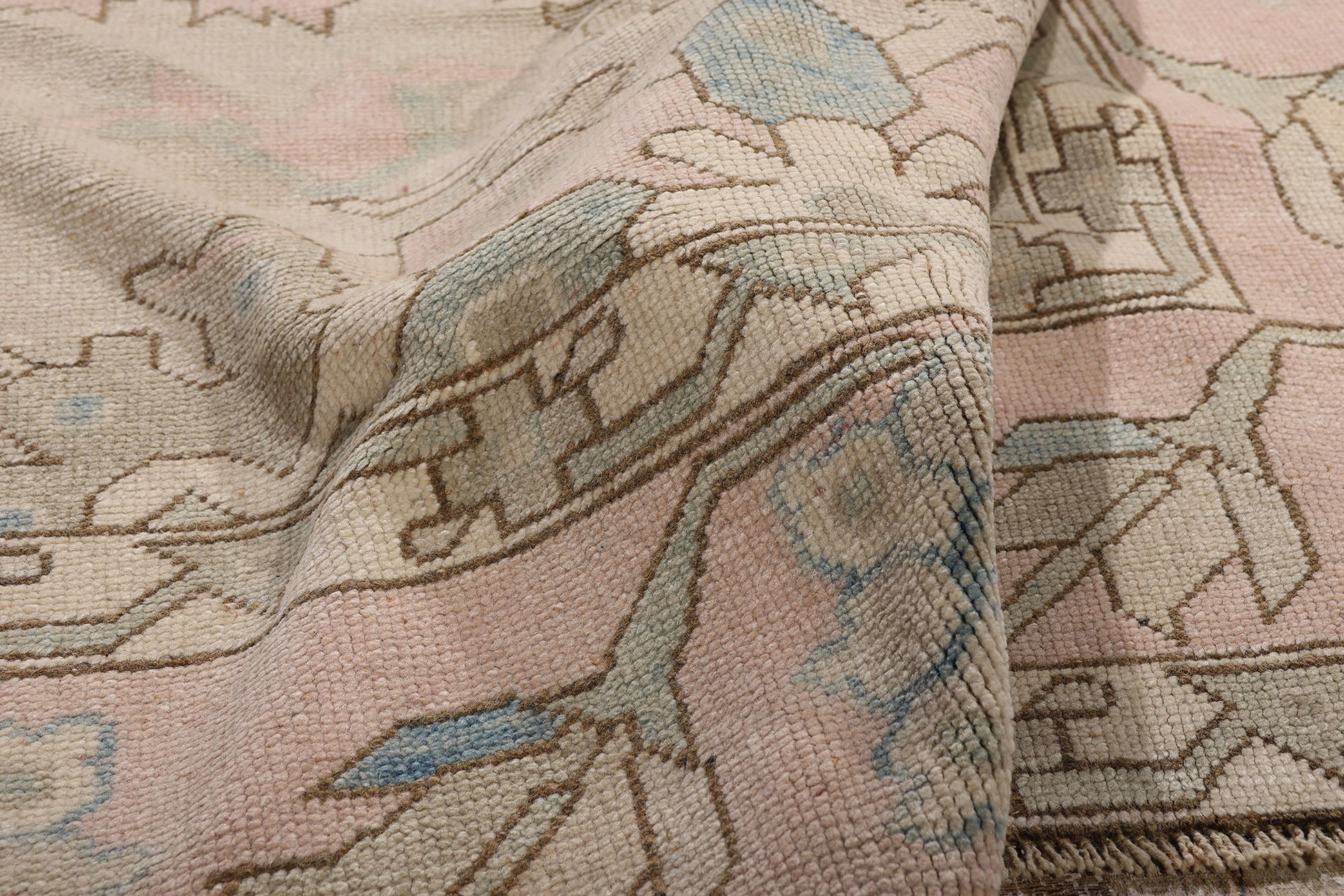 In its totality, this pastel Oushak rug is a study in restraint and refinement—a masterwork of muted grace. It whispers of noble interiors, quiet sanctuaries, and rooms where natural light is allowed to stretch and soften. Whether placed in a minimalist setting or layered in a romantic bohemian home, this woven wonder offers not just beauty, but serenity: the kind born from generations of artisanship, from dyes drawn of flower and root, and from the patient rhythm of a loom guided by ancestral hands. This Oushak is not merely a floor covering—it is a meditative heirloom, a soft-spoken relic of a time when rugs were woven not just to cover ground, but to carry spirit.