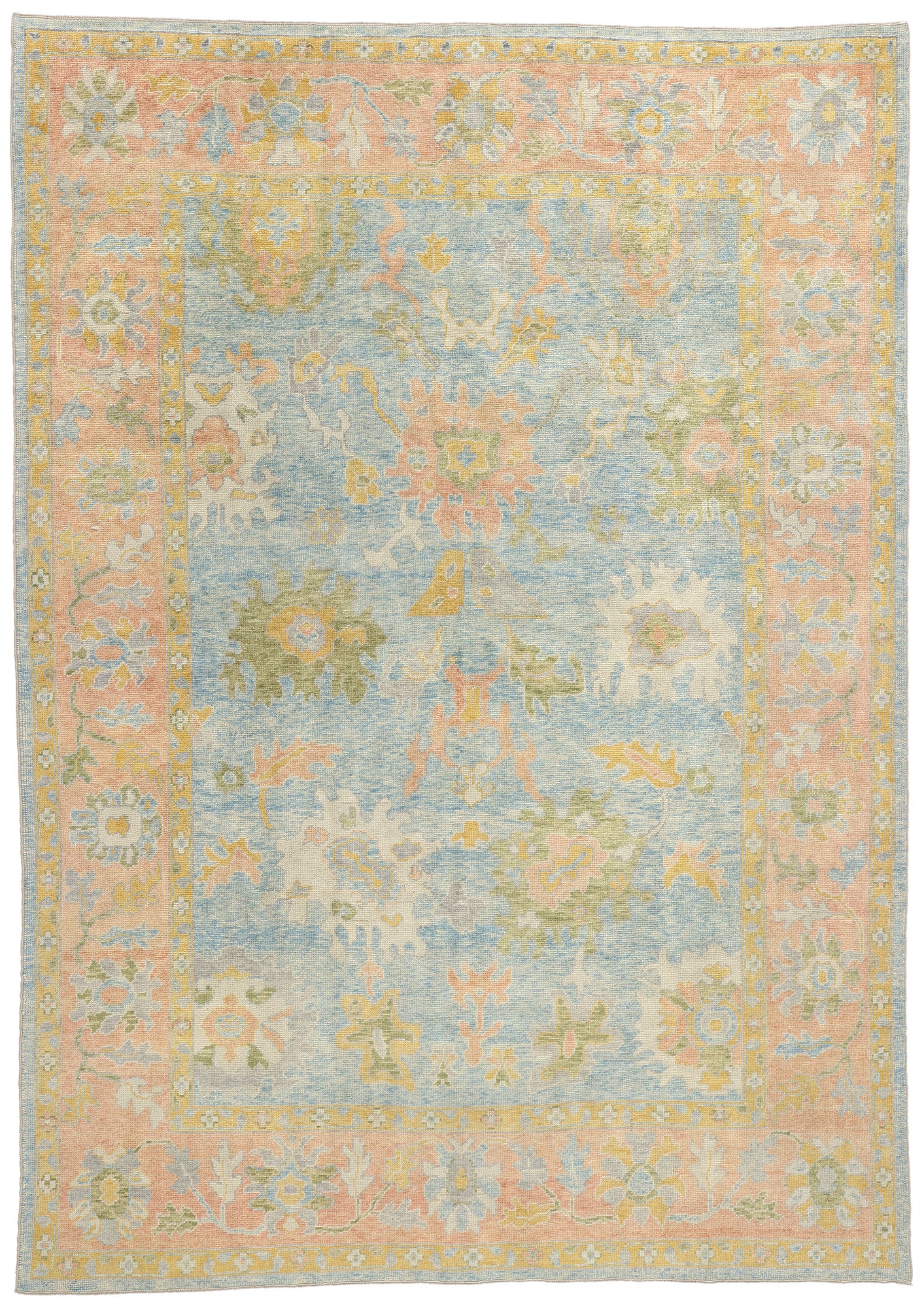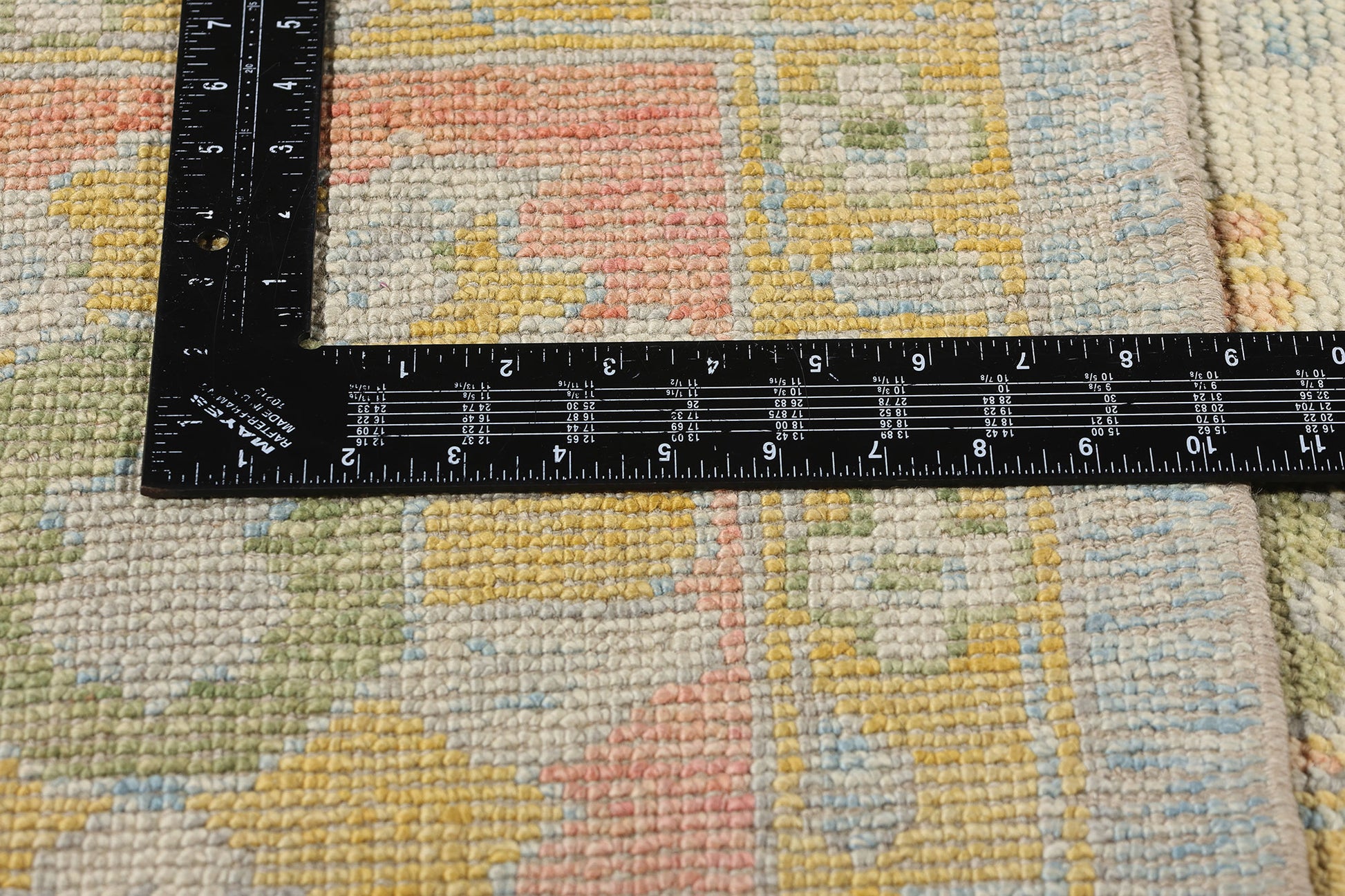 This colorful Oushak rug is not merely a decorative piece but a celebration of cultural heritage and artistic expression. It reflects the enduring appeal of Oushak weavings, known for their sophisticated and intricate designs that capture both the imagination and the gaze. Perfect for adorning a modern home or a traditional setting, this woven wonder can bring warmth, color, and a story of historical artistry to any space it inhabits, making it a treasured addition for any collector or decor enthusiast.