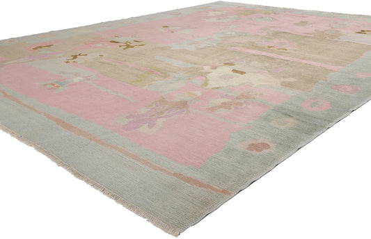 During the 18th and early 19th centuries, Oushak rug weaving declined, only to re-emerge in the 1900s when the Oushak area became the focal point of Turkish rug-making. Oushak rugs made after 1900 are primarily decorative, room-sized rugs featuring stunning medallion designs and intricate patterns that incorporate scatterings of palmettes and vine scrolls, as well as smaller images of bold medallions. Our antique Oushak rugs for sale will dynamically transform any room from nondescript to unforgettable with their quietly intense palettes, detailed motifs, and lustrous wool.