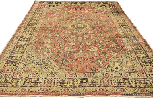 During the 18th and early 19th centuries, Oushak rug weaving declined, only to re-emerge in the 1900s when the Oushak area became the focal point of Turkish rug-making. Oushak rugs made after 1900 are primarily decorative, room-sized rugs featuring stunning medallion designs and intricate patterns that incorporate scatterings of palmettes and vine scrolls, as well as smaller images of bold medallions. Our antique Oushak rugs for sale will dynamically transform any room from nondescript to unforgettable with their quietly intense palettes, detailed motifs, and lustrous wool.