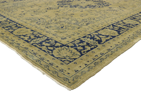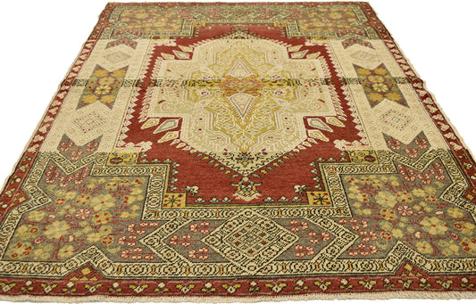 During the 18th and early 19th centuries, Oushak rug weaving declined, only to re-emerge in the 1900s when the Oushak area became the focal point of Turkish rug-making. Oushak rugs made after 1900 are primarily decorative, room-sized rugs featuring stunning medallion designs and intricate patterns that incorporate scatterings of palmettes and vine scrolls, as well as smaller images of bold medallions. Our antique Oushak rugs for sale will dynamically transform any room from nondescript to unforgettable with their quietly intense palettes, detailed motifs, and lustrous wool.