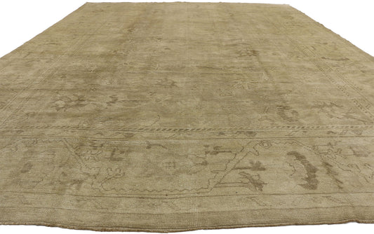 During the 18th and early 19th centuries, Oushak rug weaving declined, only to re-emerge in the 1900s when the Oushak area became the focal point of Turkish rug-making. Oushak rugs made after 1900 are primarily decorative, room-sized rugs featuring stunning medallion designs and intricate patterns that incorporate scatterings of palmettes and vine scrolls, as well as smaller images of bold medallions. Our antique Oushak rugs for sale will dynamically transform any room from nondescript to unforgettable with their quietly intense palettes, detailed motifs, and lustrous wool.