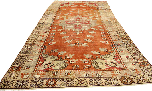 The antique Oushak rugs for sale in our collection feature a variety of motifs that signify their origin, including medallions, geometric designs, sophisticated animal forms, and cloud motifs.