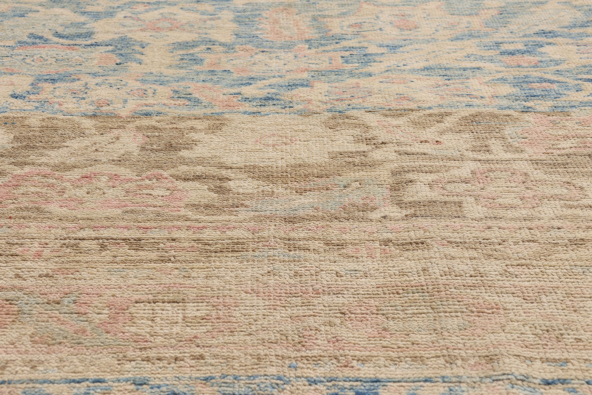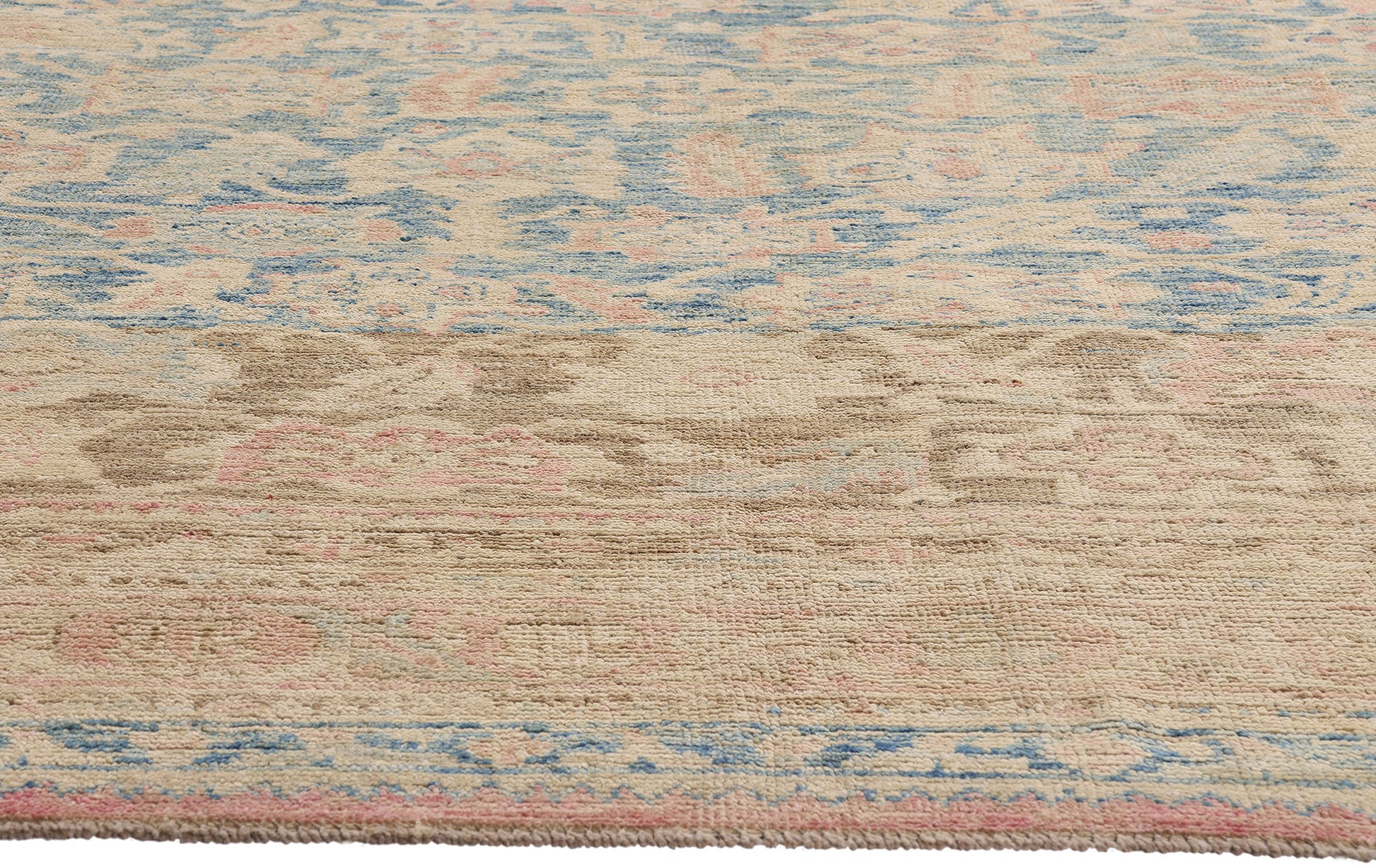 This hand knotted wool modern Oushak rug, woven in Pakistan, embodies the quiet confidence of heritage reinterpreted for today’s most discerning interiors. Inspired by the legendary Oushak carpets once commissioned for Ottoman palaces, this extraordinary masterpiece distills centuries of Anatolian design into a softer, more atmospheric expression. It is a rug meant not to announce itself loudly, but to reward those who recognize nuance, provenance, and restraint.