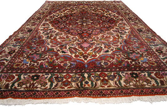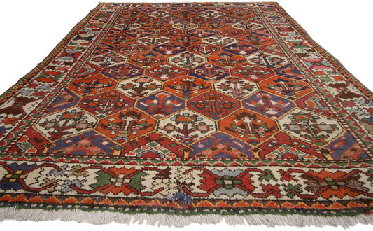 Bakhtiari rugs offer you the chance to enhance your space with vibrant colors and intricate motifs. The texture and layering of colors and silhouettes result in an elegant warmth that elevates and grounds your interior design. Blend your Persian Bakhtiari carpet with modern or traditional decor, framing a rustic wooden table in your dining room, or add comfort to your contemporary bedroom with a rug at the foot of the bed. Timeless and sophisticated, Bakhtiari carpets fit in with every aesthetic.