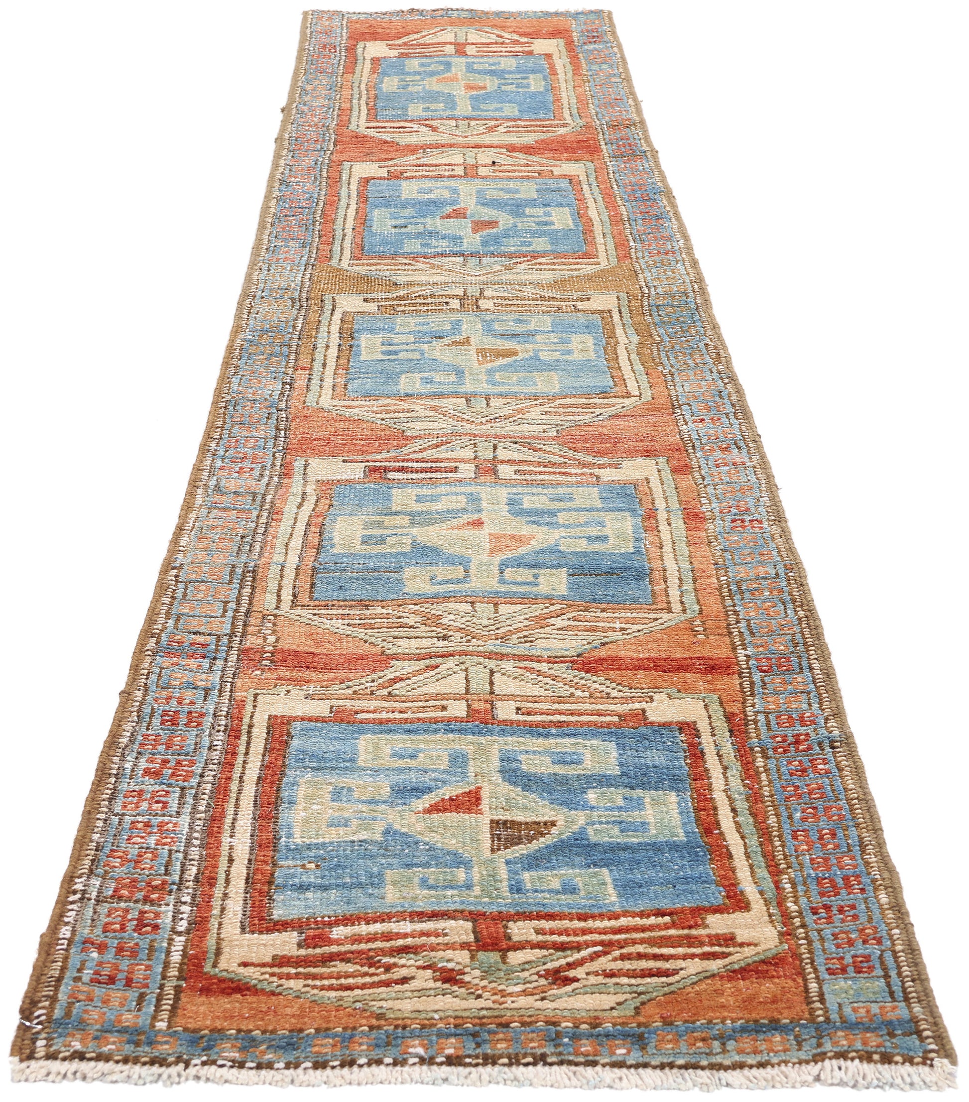 With its relaxed refinement and rustic elegance, this antique Heriz rug runner is a versatile piece that fits seamlessly into a variety of interior styles. Whether placed in a modern space or a cozy bohemian setting, it brings warmth, history, and a touch of quiet sophistication. Its distressed finish and symbolic motifs invite viewers to explore its story, making it a cherished addition to nearly any home or collection.