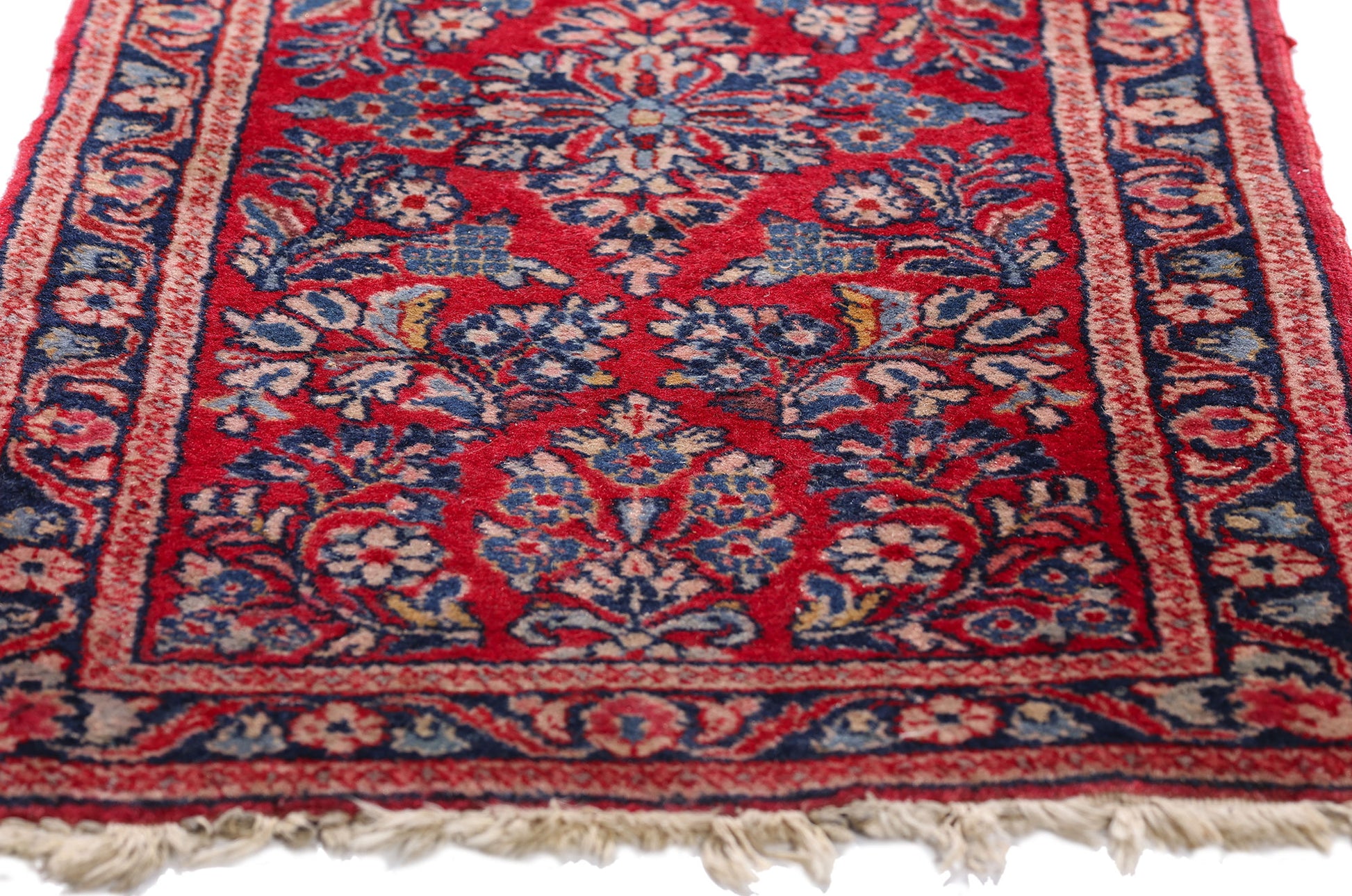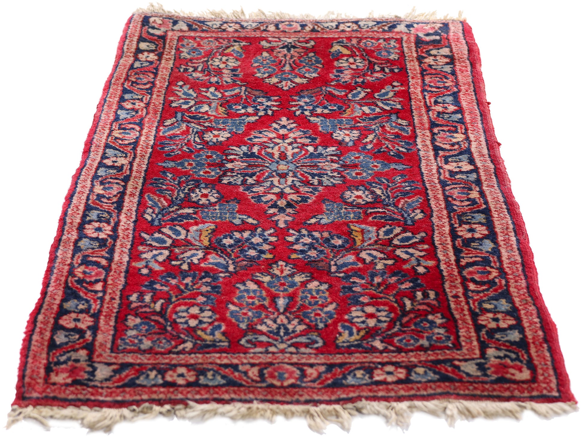 79296 Antique Red Persian Sarouk Rug, 01'07 x 03'05.