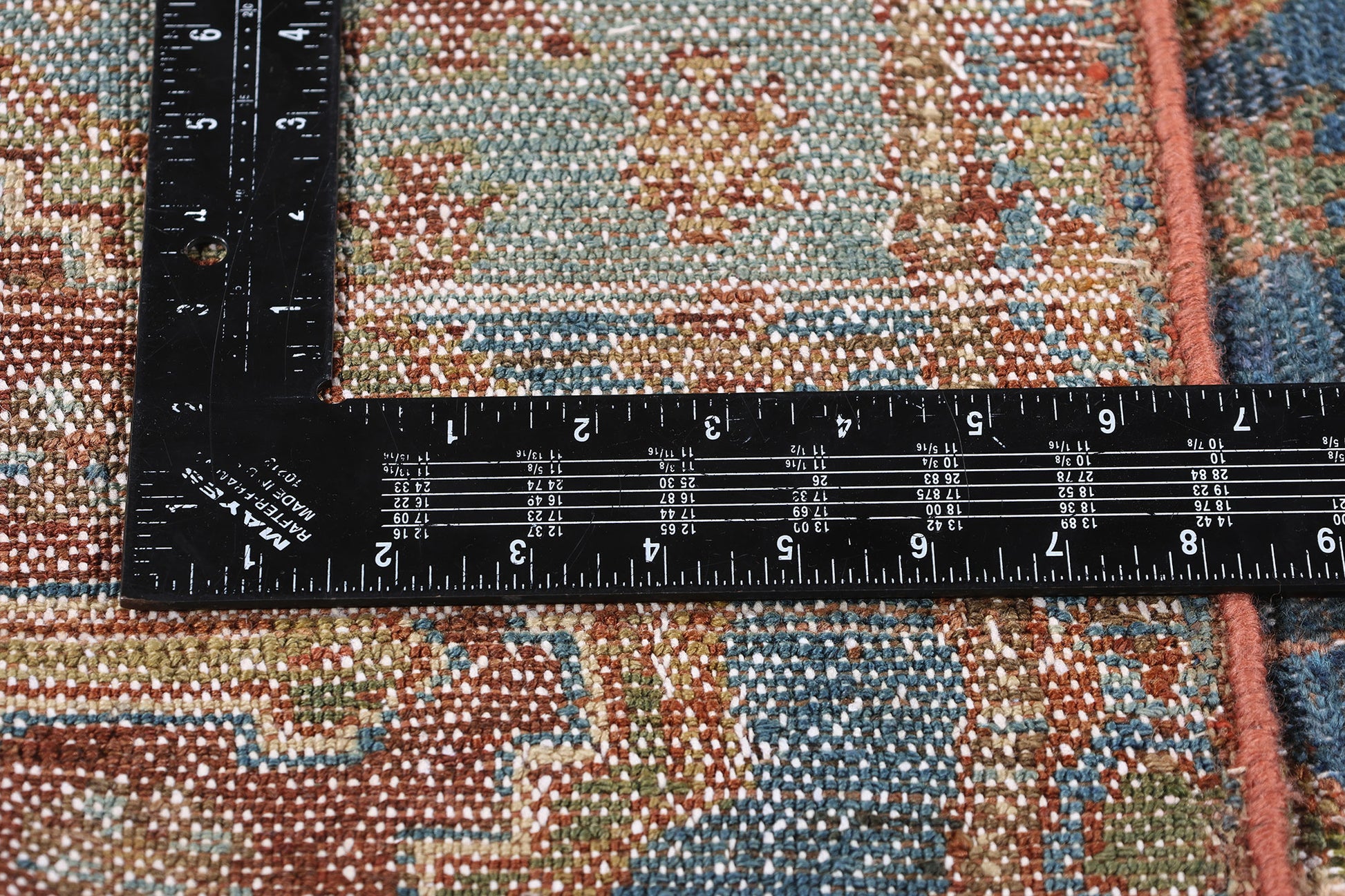 The rich blue abrash backdrop sets the stage for a beguiling series of esoteric motifs, a testament to the weavers’ artistry and connection to their natural surroundings. The stepped pole medallion takes center stage, adorned with ambiguous tribal symbols that imbue the Bakhtiari runner with a sense of mystique and storytelling. Outlined in a russet-colored stepped contour, the pole medallion is further enhanced by delicate rosettes that add texture and balance to the overall design. The harmonious interplay of bold geometry and soft ornamentation showcases the cultural and artistic traditions of the Bakhtiari weavers.