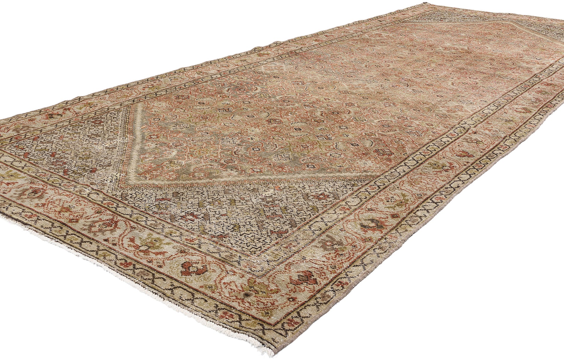 61372 Distressed Antique Persian Malayer Gallery Rug, 05'02 x 13'01.