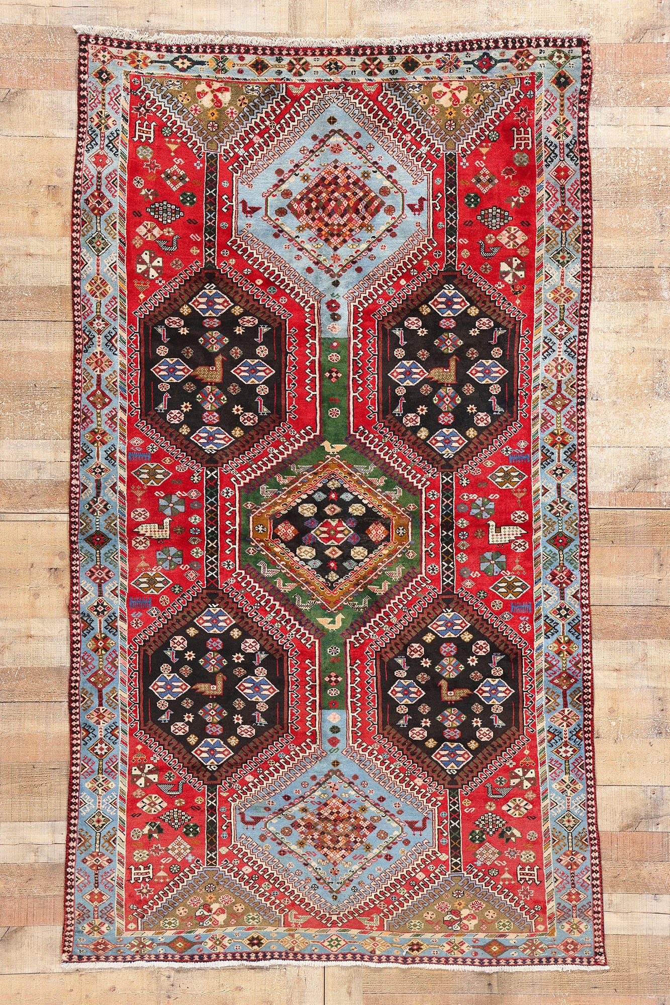 61306 Vintage Persian Yalameh Rug, 04'09 x 08'03.