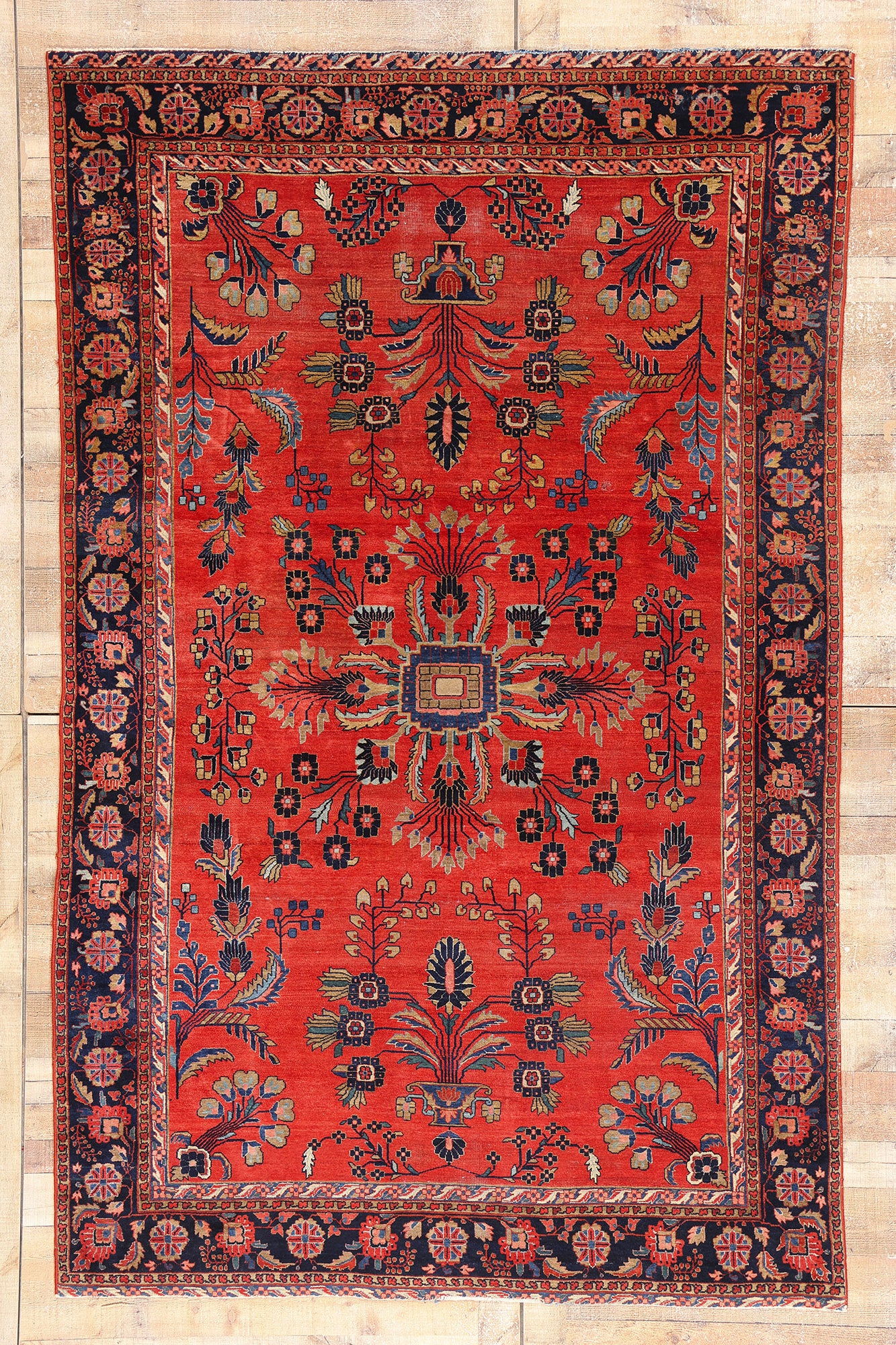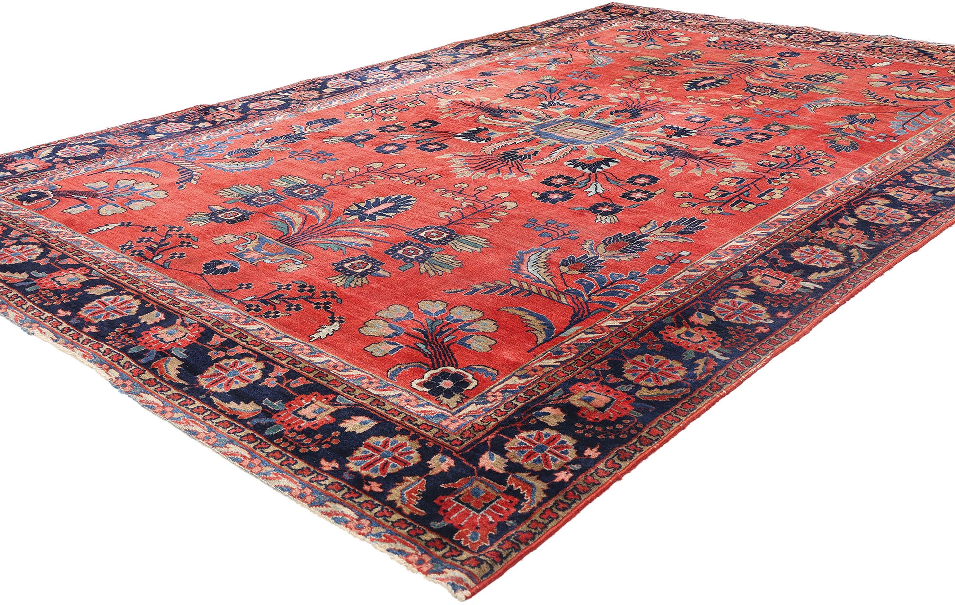 79184 Antique Red Persian Mohajeran Sarouk Rug, 06'05 x 10'01.