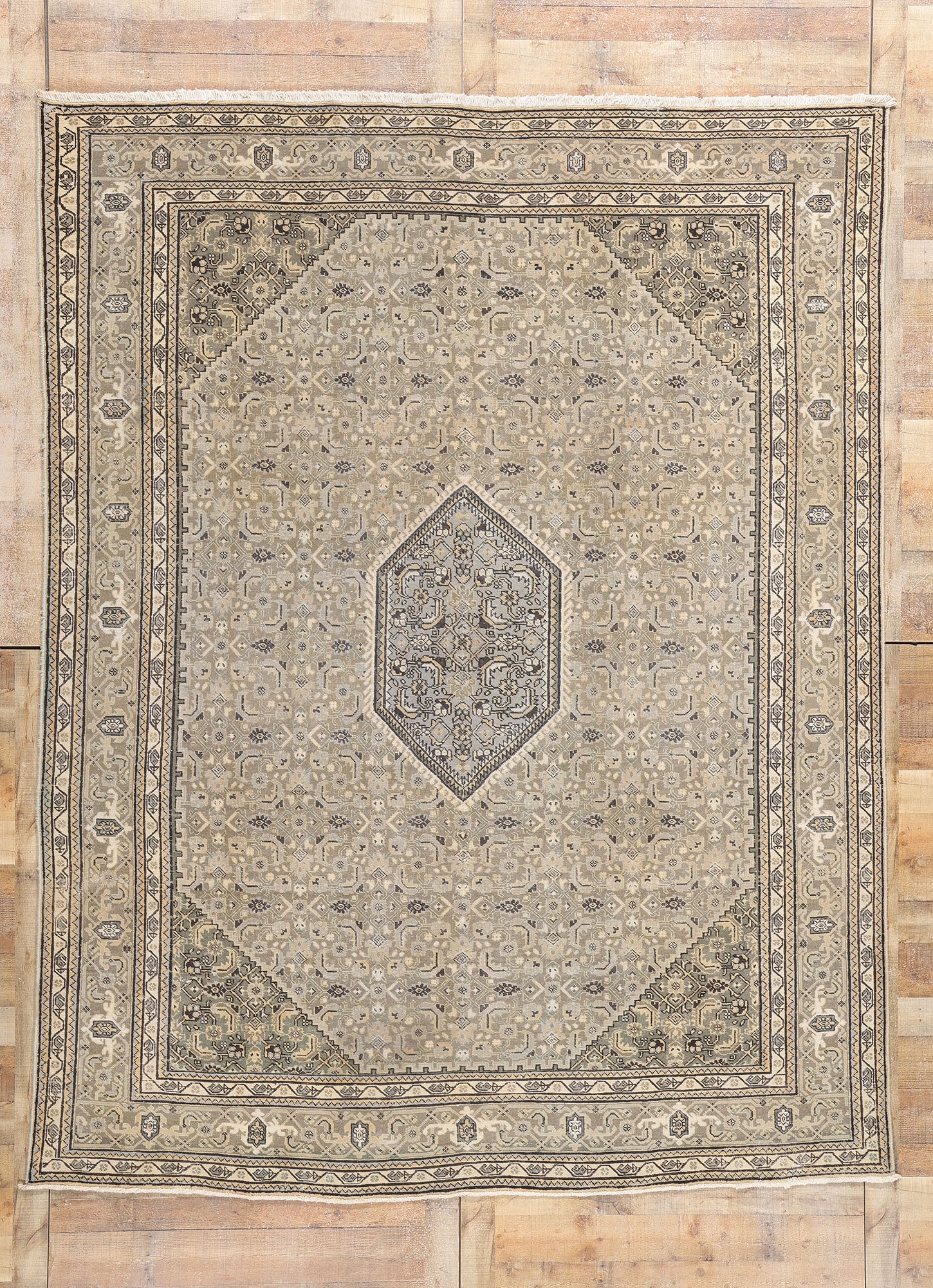61377 Distressed Vintage Persian Ardabil Rug, 08'05 x 10'08.