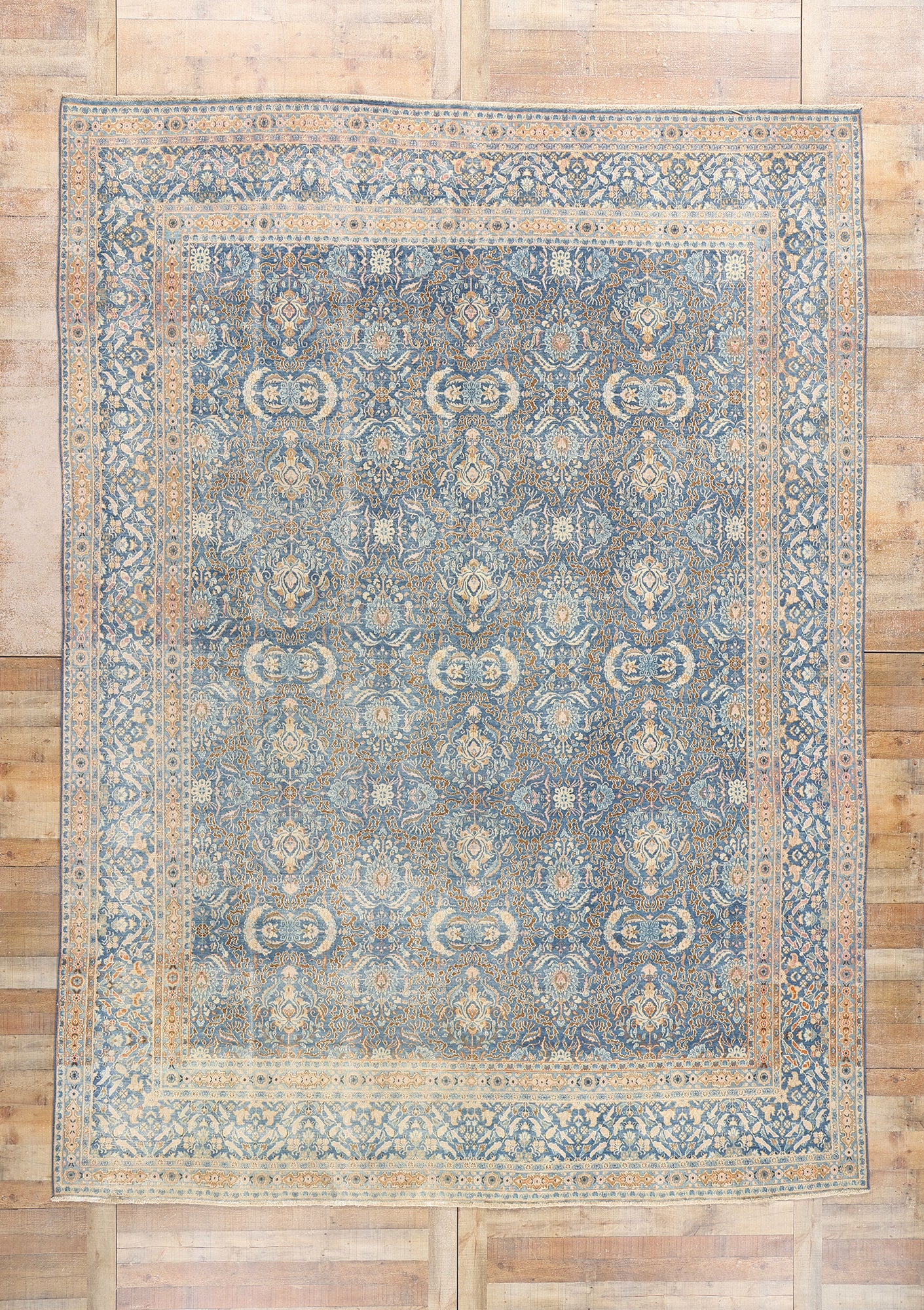 61380 Distressed Vintage Blue Persian Mood Rug, 09'06 x 12'11.