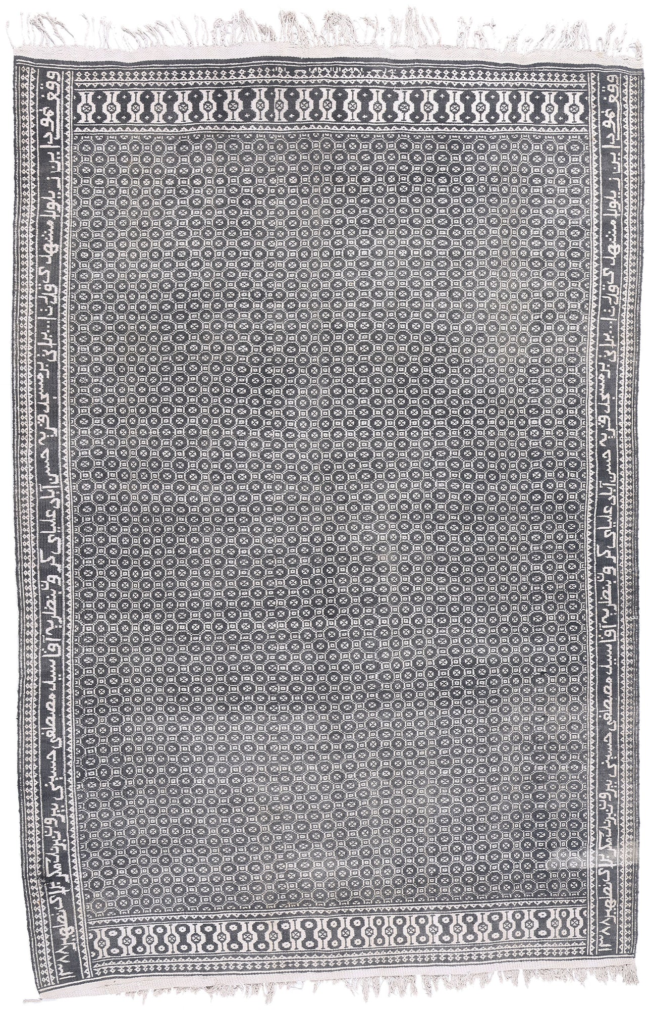 This woven wonder is more than just a rug; it is a historical document, a work of art, and a symbol of cultural devotion. Its geometric design, subdued color palette, and meaningful inscriptions make it a captivating addition to nearly any space, whether as a collector’s item or a statement piece in an interior setting. Perfect for those who appreciate the beauty of Persian craftsmanship and the stories woven into every thread, this Ziloo rug is a timeless artifact that bridges tradition and history, carrying its legacy forward into the modern world.