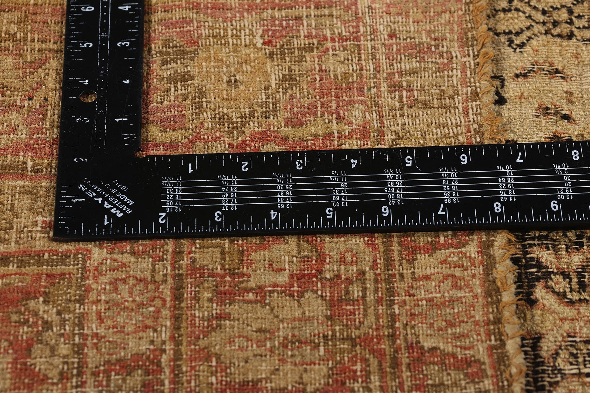 Framed by a traditional Herati border and flanked by inner and outer floral meander guard borders, the rug’s edges create a lush enclosure that complements the internal composition. This weathered woven wonder is not only a boundary for the intricate designs within but also an extension of the rug's aesthetic, featuring repeating patterns that echo the central medallion’s motifs. This antique Persian Mahi Tabriz rug, with its blend of historical richness and aesthetic grace, is a timeless piece that offers both visual intrigue and a palpable sense of history to nearly any space it adorns.