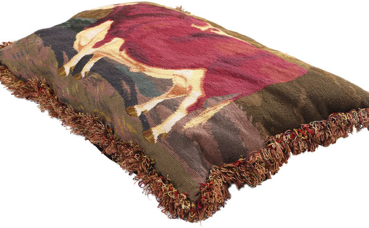 2 x 3 Antique Needlepoint Shorthorn Ox Tapestry Pillow 79144