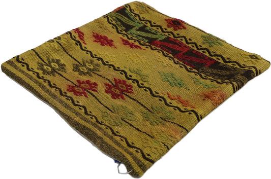 1 x 1 - Yellow Vintage Turkish Pillow Rug - 53638