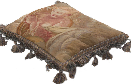 1 x 1 Antique French Aubusson Tapestry Cushion 79198