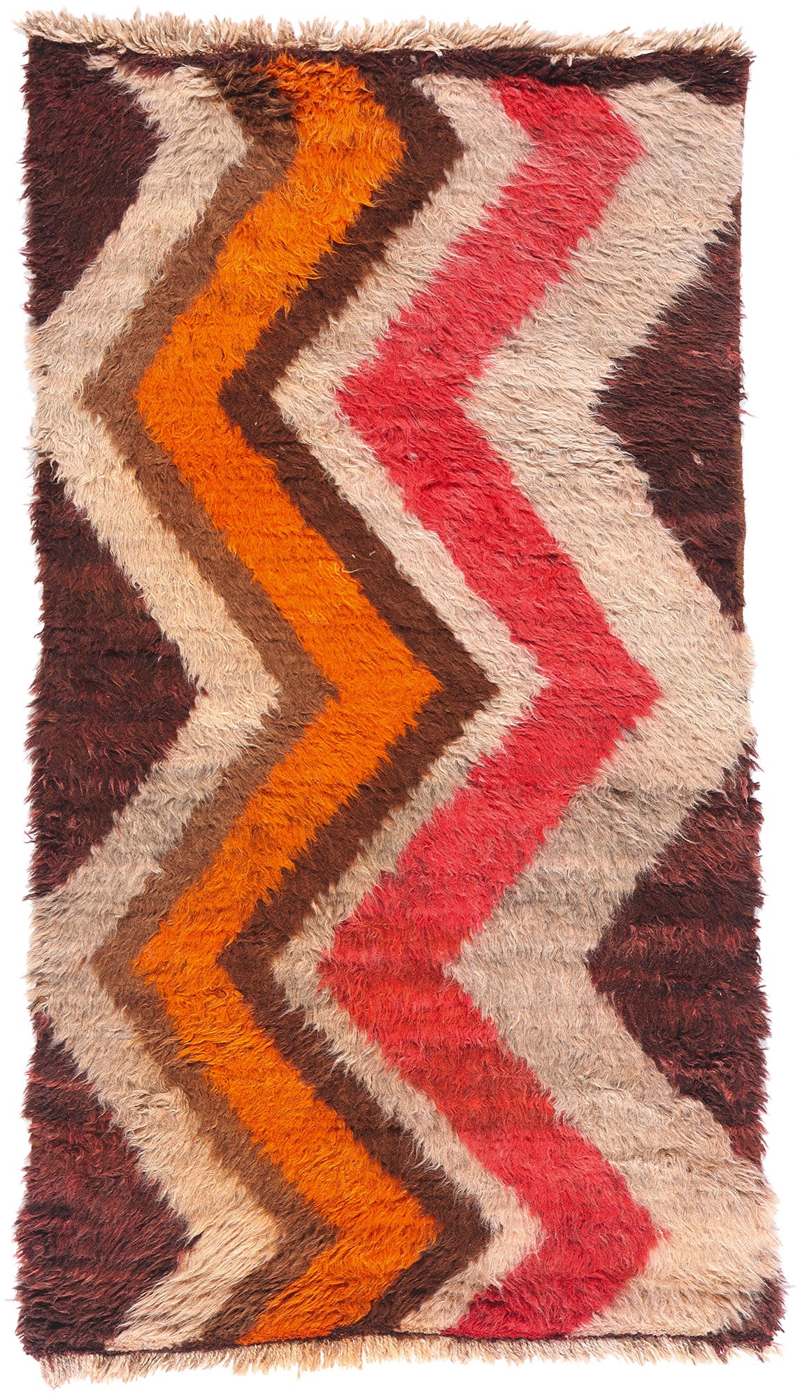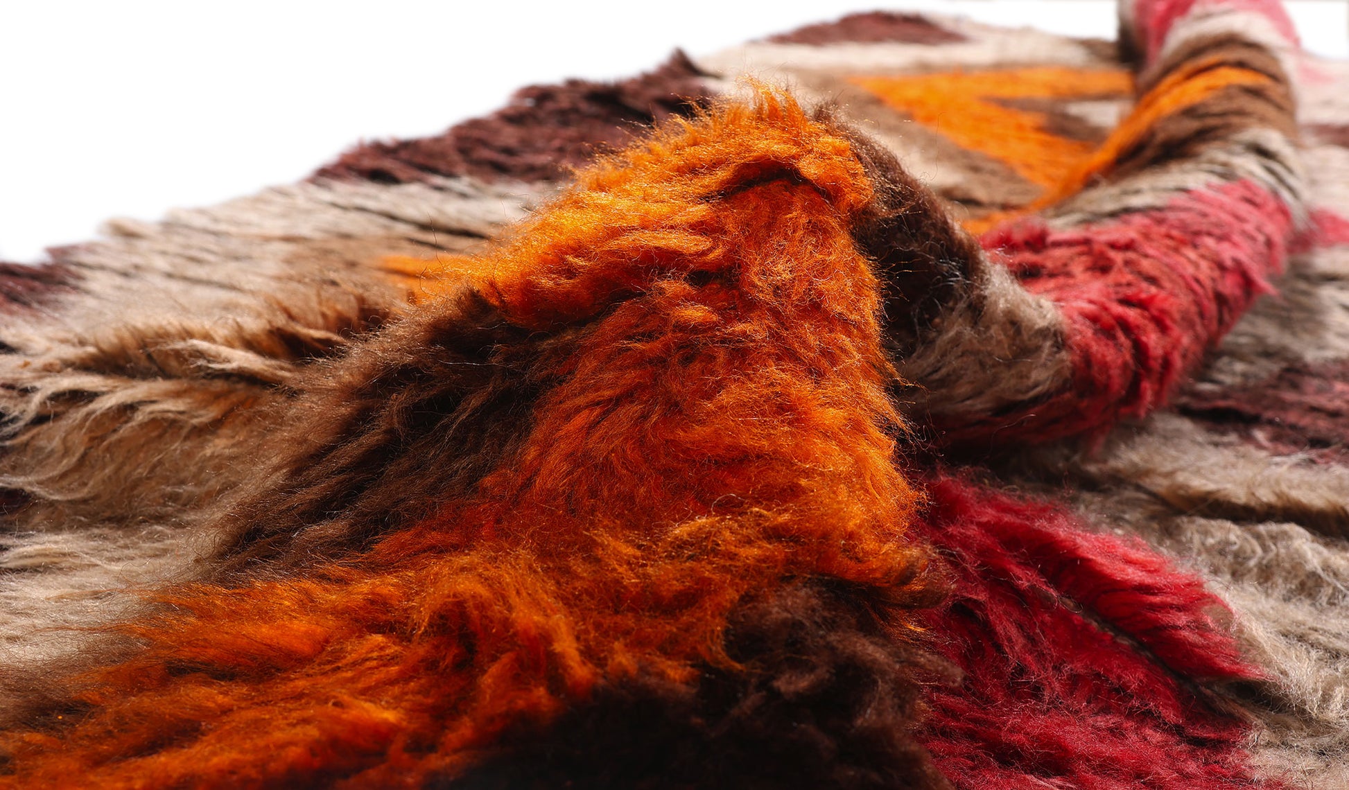 The Boujad rug's lively palette and dynamic chevron design offer a sense of both nostalgia and contemporary allure, fusing traditional Berber symbolism with a modern bohemian flair. The interplay of colors in this piece is striking—each zigzag stripe flowing into the next, creating a perfect balance between vibrancy and subtlety. The long, shaggy pile further enhances the Moroccan rug's warmth, inviting tactile interaction and infusing any room with its inviting texture. The fringed ends add an extra layer of authenticity, grounding the design in traditional Moroccan weaving techniques.