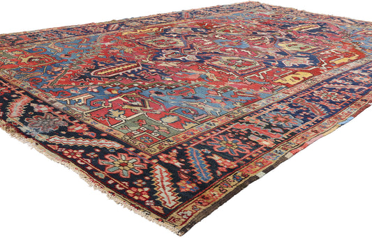 7 x 10 Antique Red Persian Dragon Heriz Rug 90009