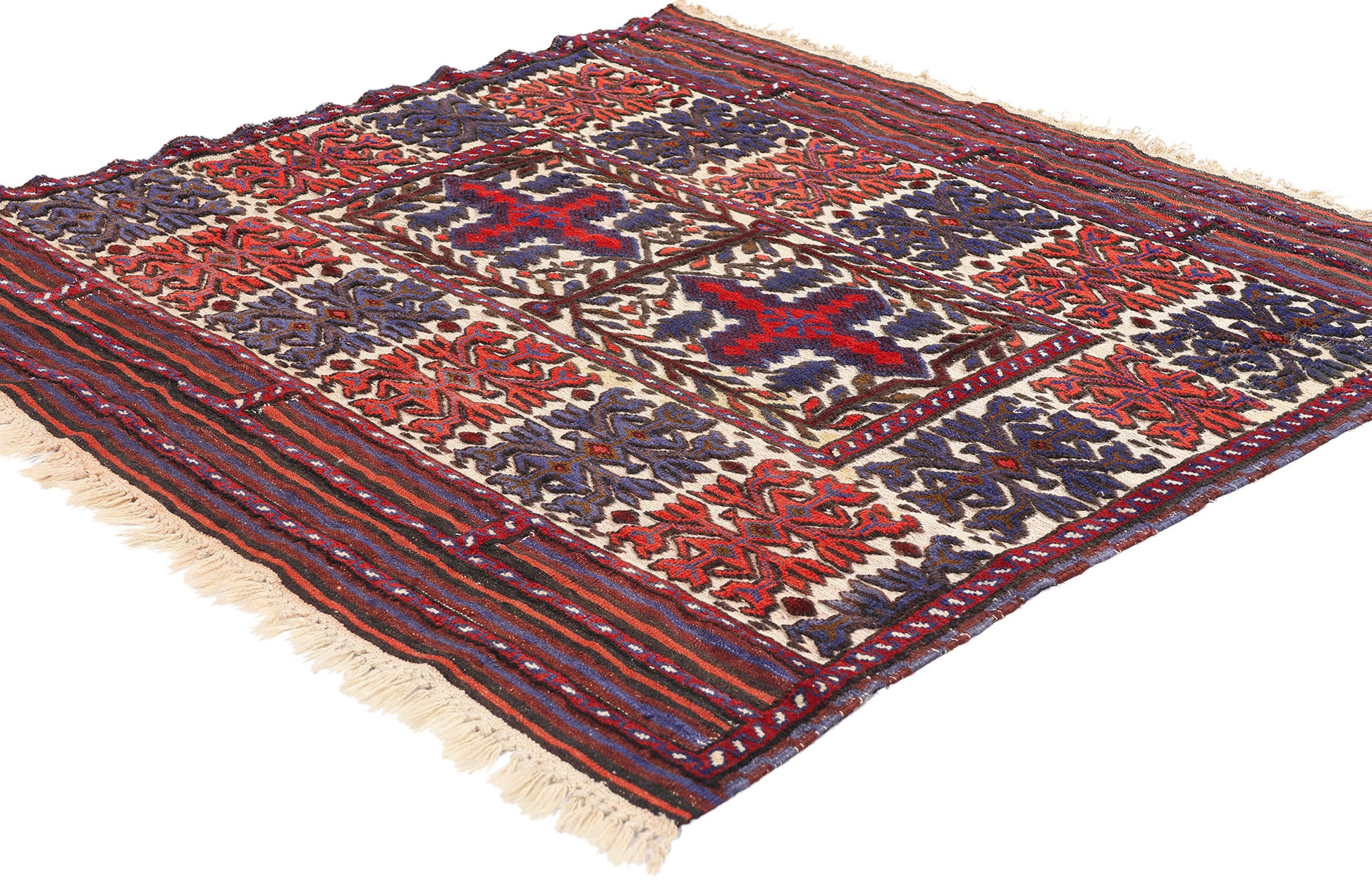 79092 Antique Caucasian Soumak Rug, 03'11 x 03'11.