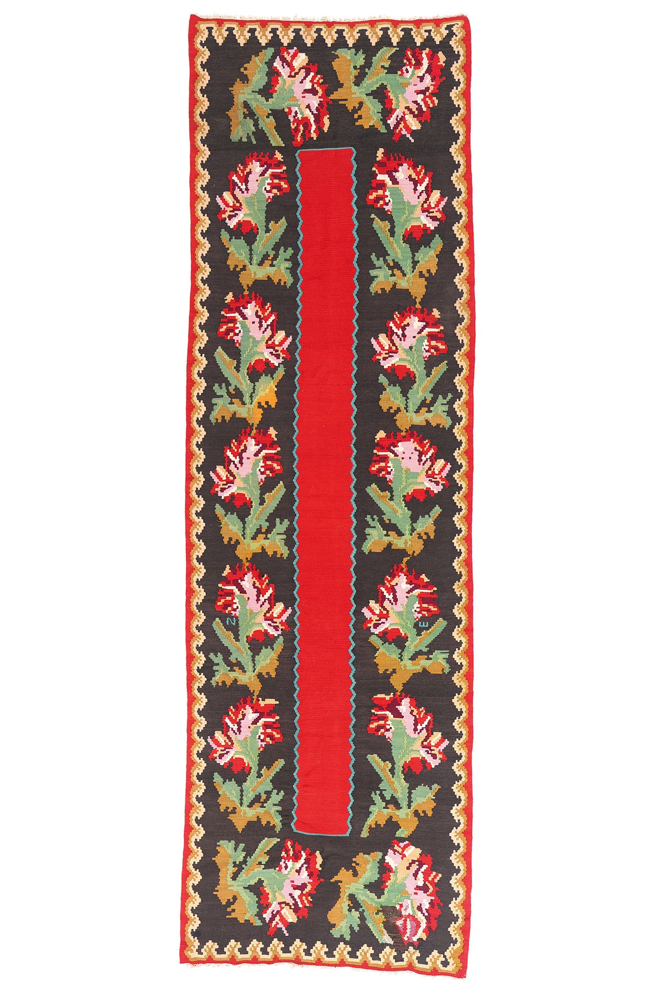 To behold this antique Karabagh kilim is to walk a path scented with memory and color, where craft and romance entwine like the stems of a rose. It invites not only admiration but reflection: on the mountain gardens that inspired it, on the hands that coaxed its fibers into form, and on the enduring power of textiles to preserve beauty across borders and generations. More than a runner, it is a ceremonial passage woven in wool—a legacy of florals in full bloom, held still in time.