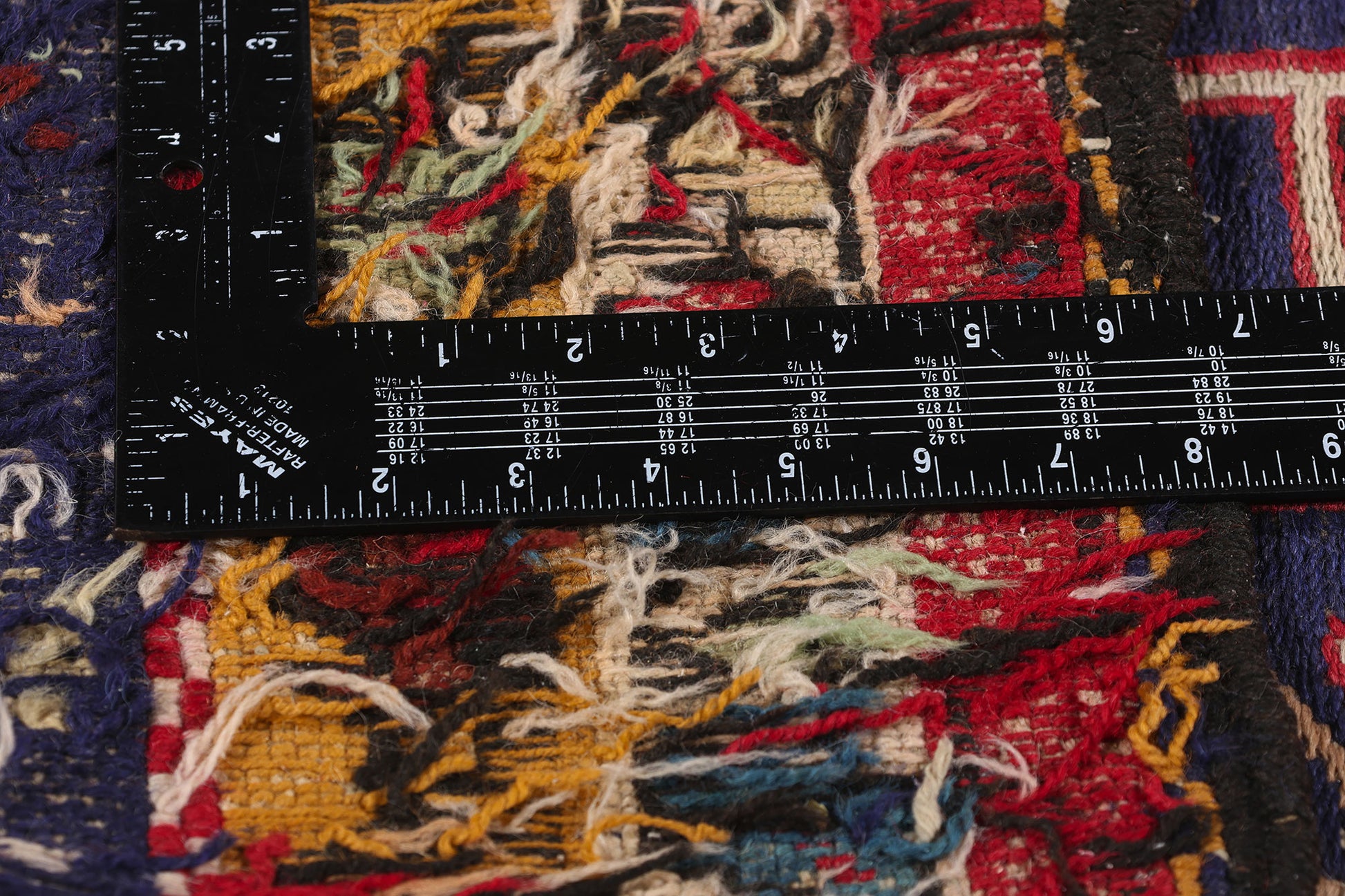 The rich symbolism and vibrant artistry of this antique Caucasian Soumak rug make it not just a decorative piece but a profound expression of the weaver’s worldview and heritage. The harmonious interplay of colors, the meticulous detailing of the motifs, and the bold, rhythmic symmetry of the design speak to the nomadic charm and resilience of Caucasian tribal art. This Caucasian tribal rug, with its intricate narrative woven into every thread, is not merely a floor covering but a tangible connection to the past, reflecting the endurance, faith, and spirit of the people who created it. Its compact size makes it perfect for adding a touch of historical charm and artistic depth to any space, offering a window into a world rich with symbolism and cultural significance.
