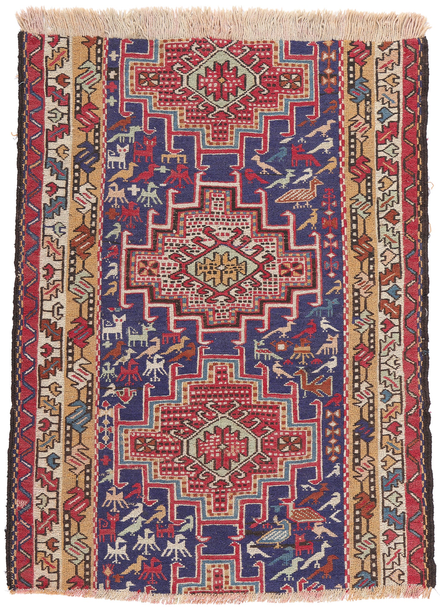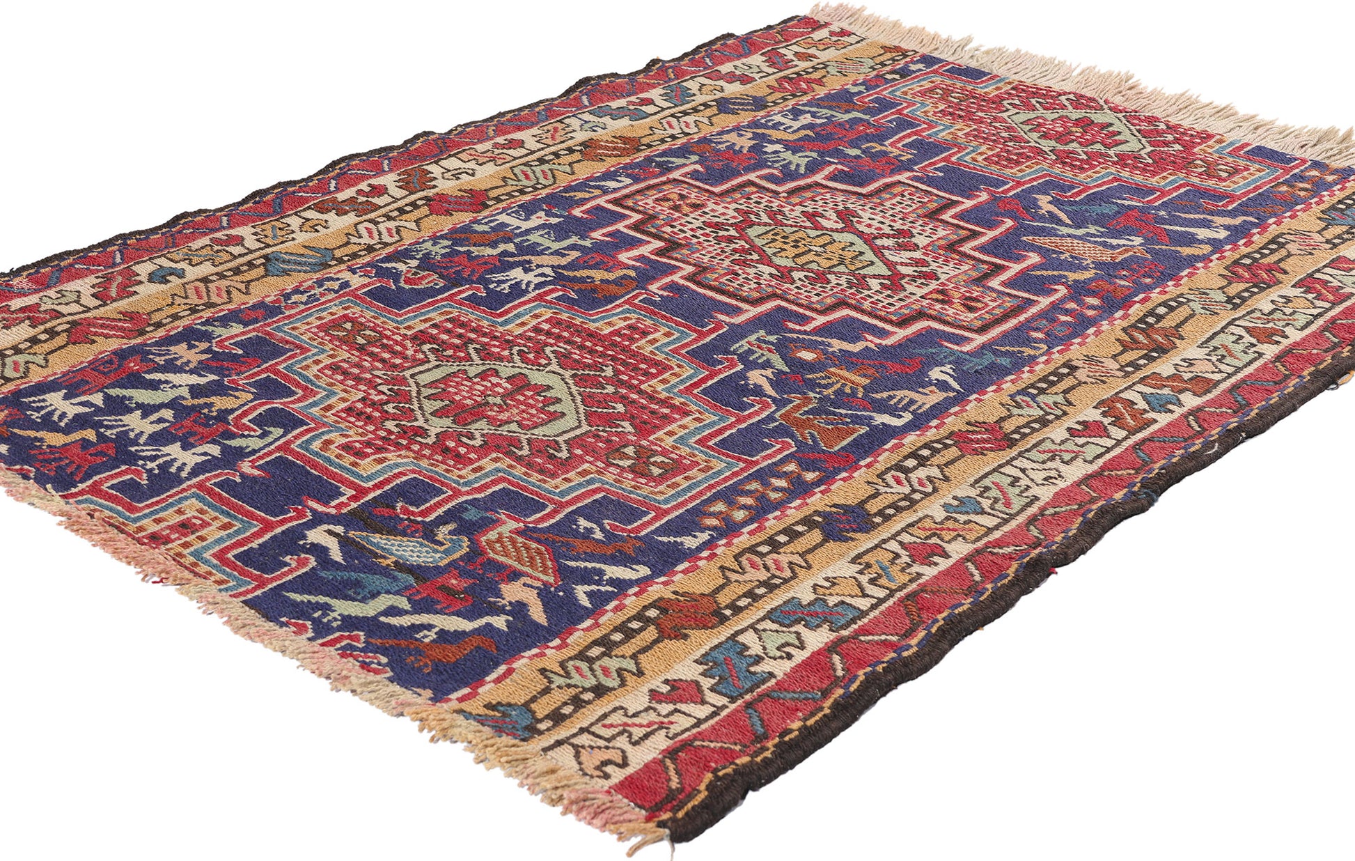 78942 Antique Caucasian Soumak Rug, 03'01 x 04'02.