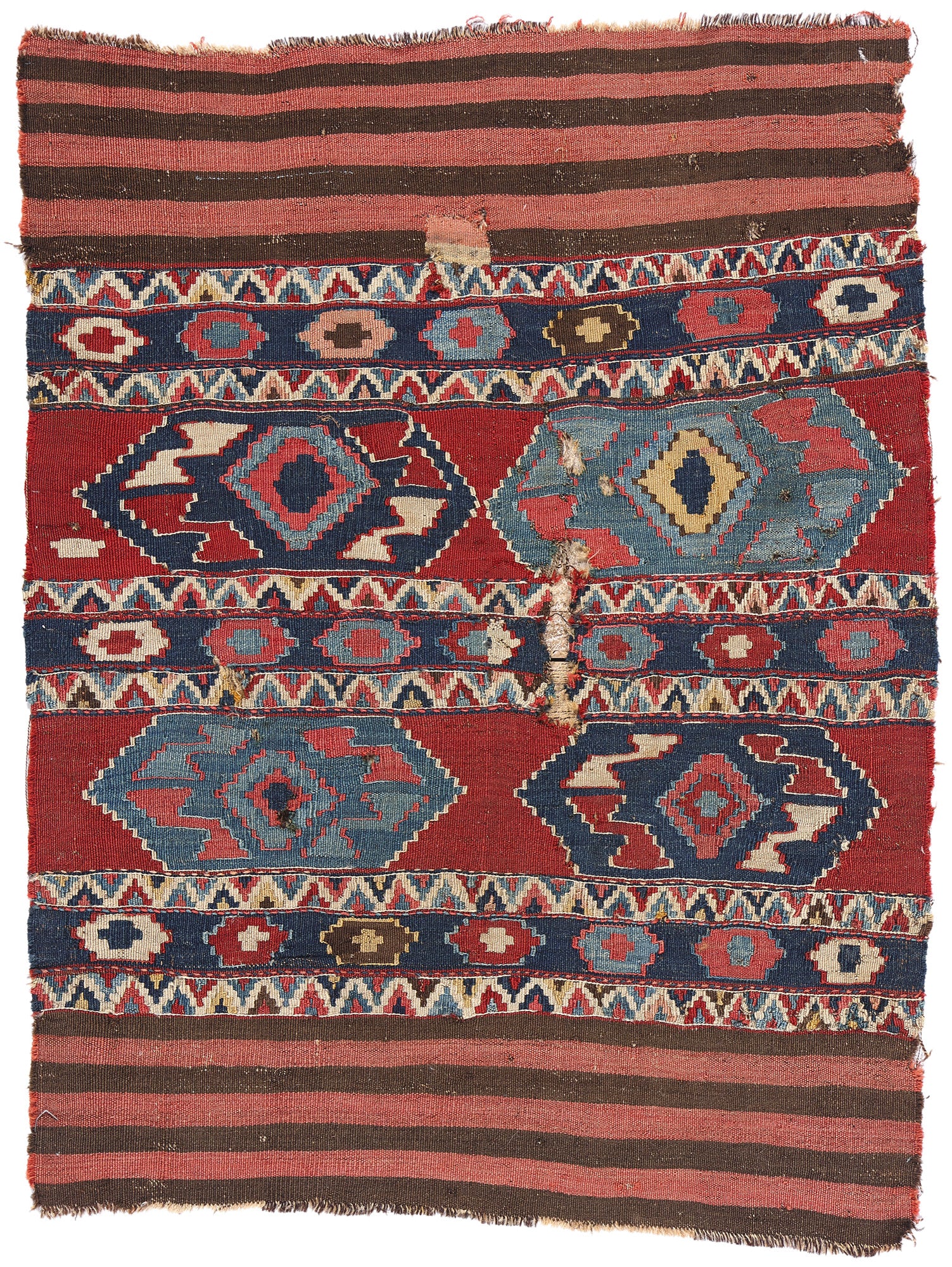 3 x 4 Antique-Worn Caucasian Shirvan Kilim Rug 78996