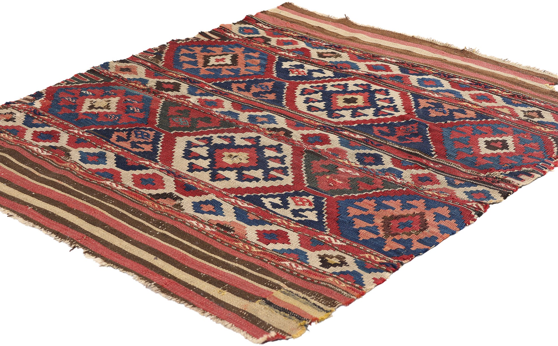 78997 Distressed Antique Caucasian Shirvan Kilim Rug, 02'11 x 03'06.
