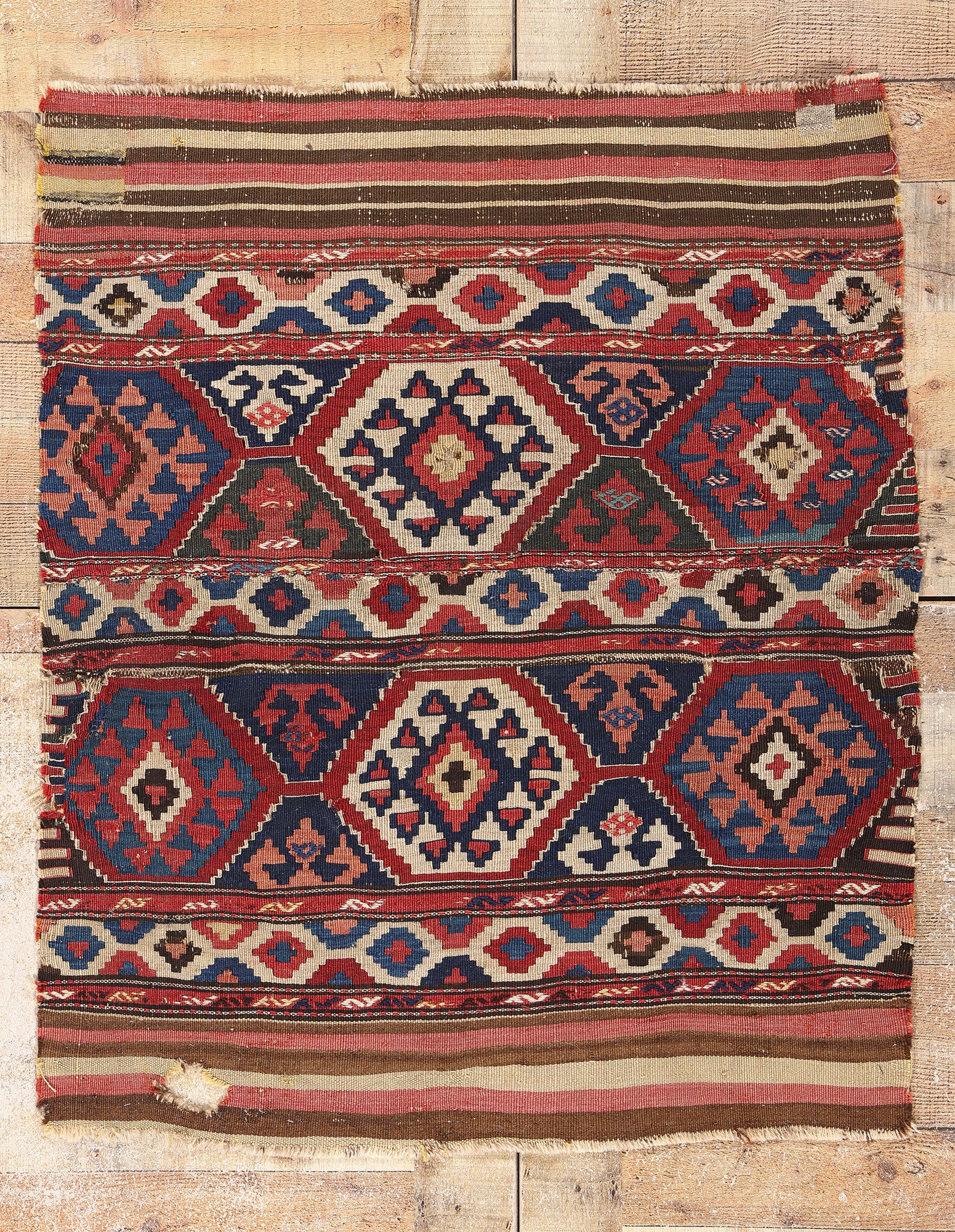 3 x 3 Antique-Worn Caucasian Shirvan Kilim Rug 78997