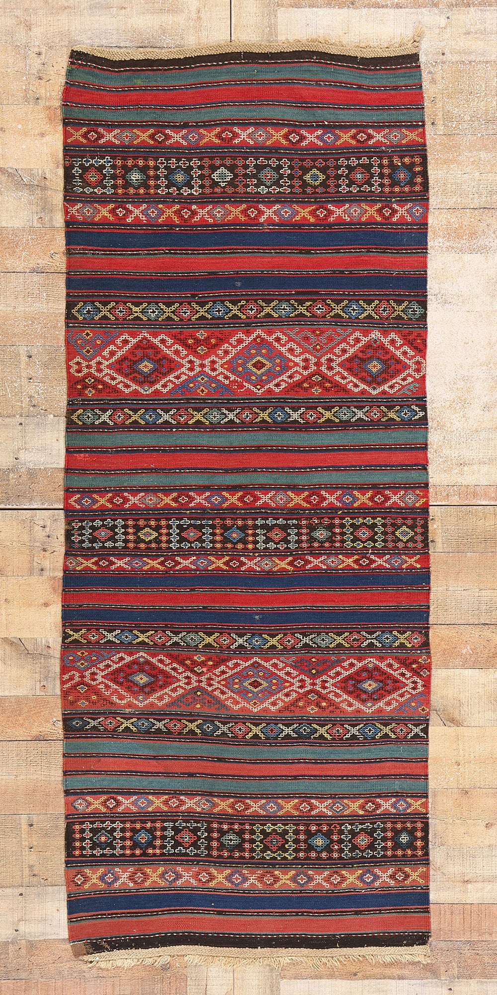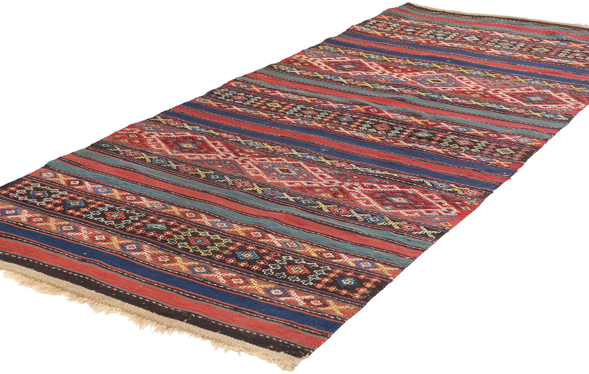 78950 Antique Caucasian Shahsavan Jajim Kilim Rug, 02'09 x 06'08.