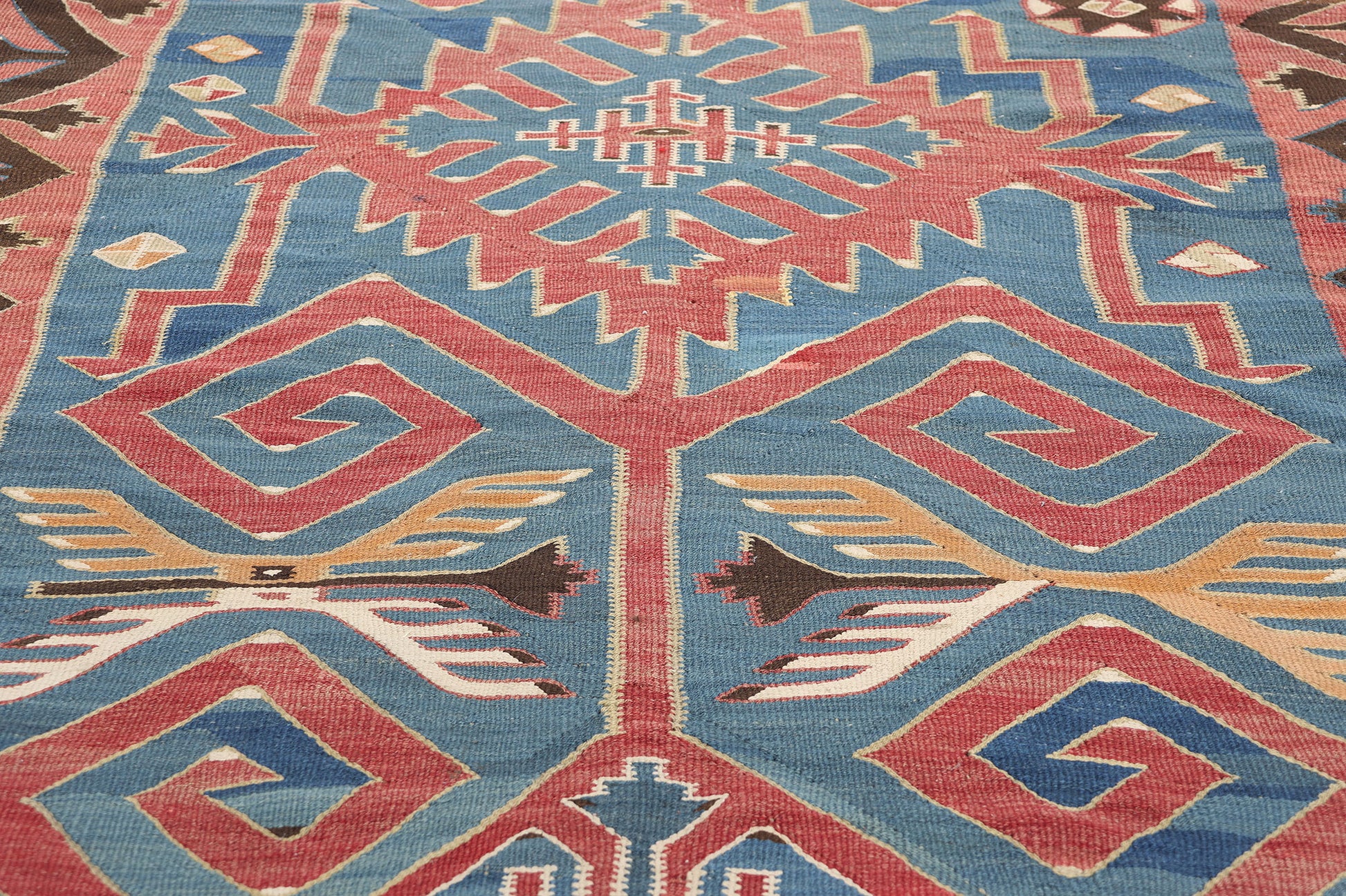 Today, antique Caucasian Avar kilims of this scale are particularly sought after by collectors and connoisseurs. They represent both a piece of history and a connection to a rich cultural heritage. The rug’s bold, yet harmonious color scheme and the intricate geometric designs embody the artistic spirit of the Avar people. Its exceptional size and craftsmanship make it a statement piece that brings both history and artistry into almost any space.