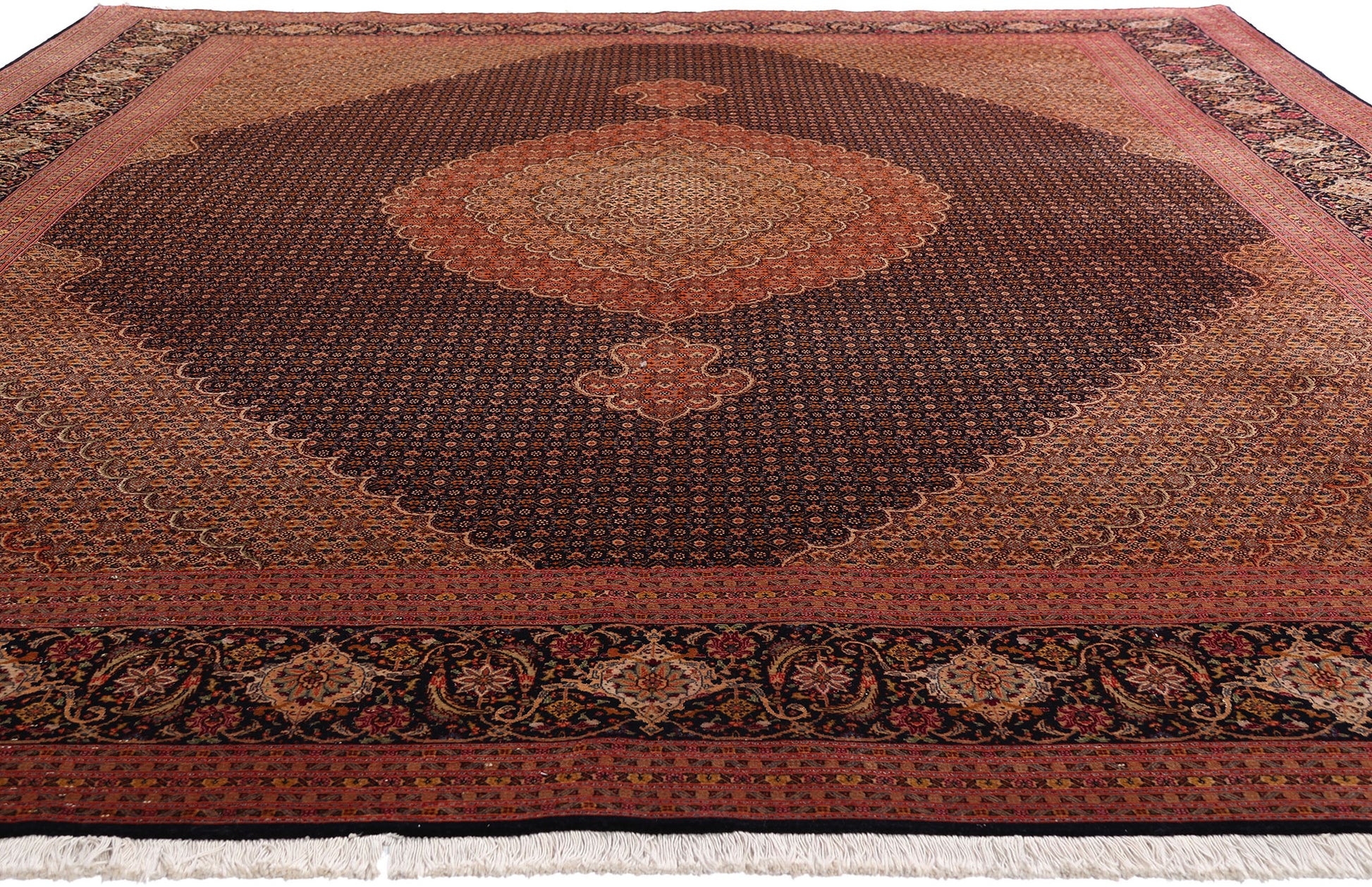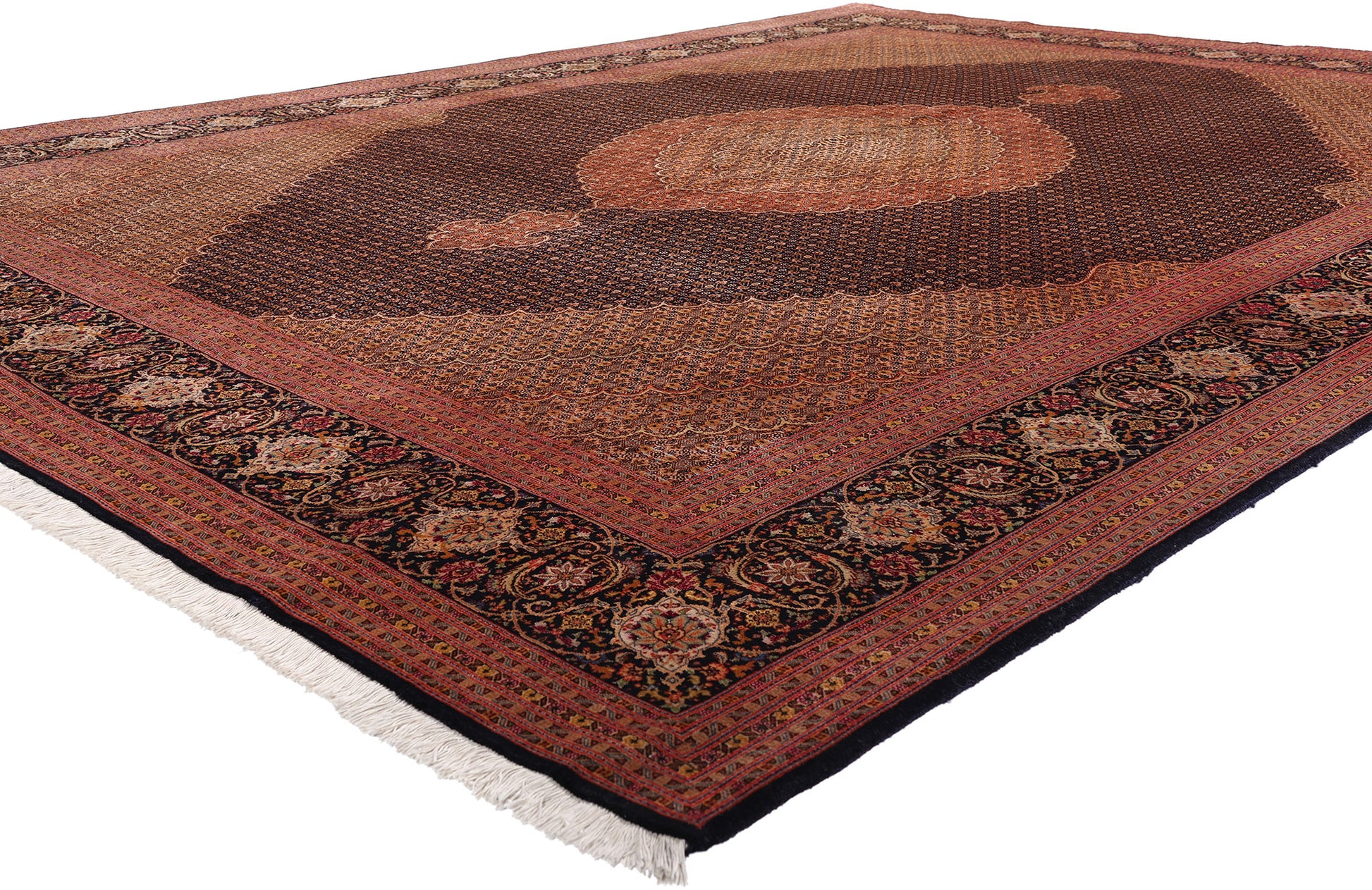 76980 Vintage Persian Mahi Tabriz Rug, 09'10 x 12'09.