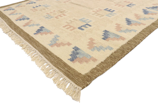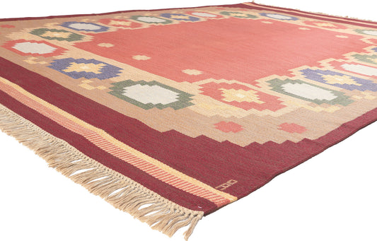 Originating in Sweden, Denmark, and Finland, vintage Scandinavian carpets were woven to highlight both utility and artistry. From Röllakan (flatweave kilims) with geometric patterns, natural dyes, and lightweight versatility to Finnish Rya rugs featuring lush textures and thick, hand-knotted designs, Scandinavian weaving flourished in the 20th century. The Chinese rug inspiration gave way to distinctly Scandinavian designs, especially due to designers like Märta Måås-Fjetterström, who elevated Swedish weaving and motifs to global recognition.
