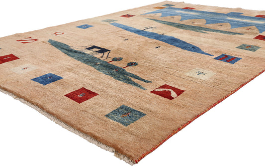 7 x 9 Tan Vintage Persian Gabbeh Rug 61490