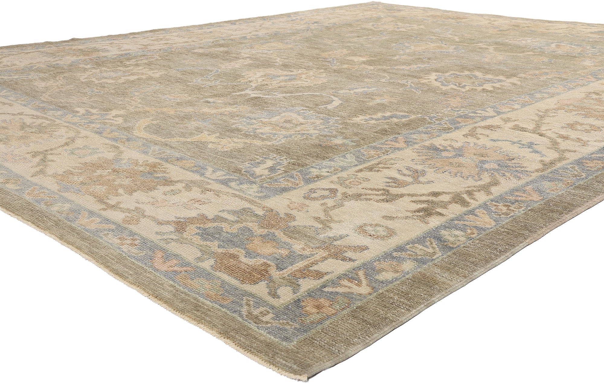 54034 New Modern Earth-Tone Turkish Oushak Rug, 11'01 x 14'03.