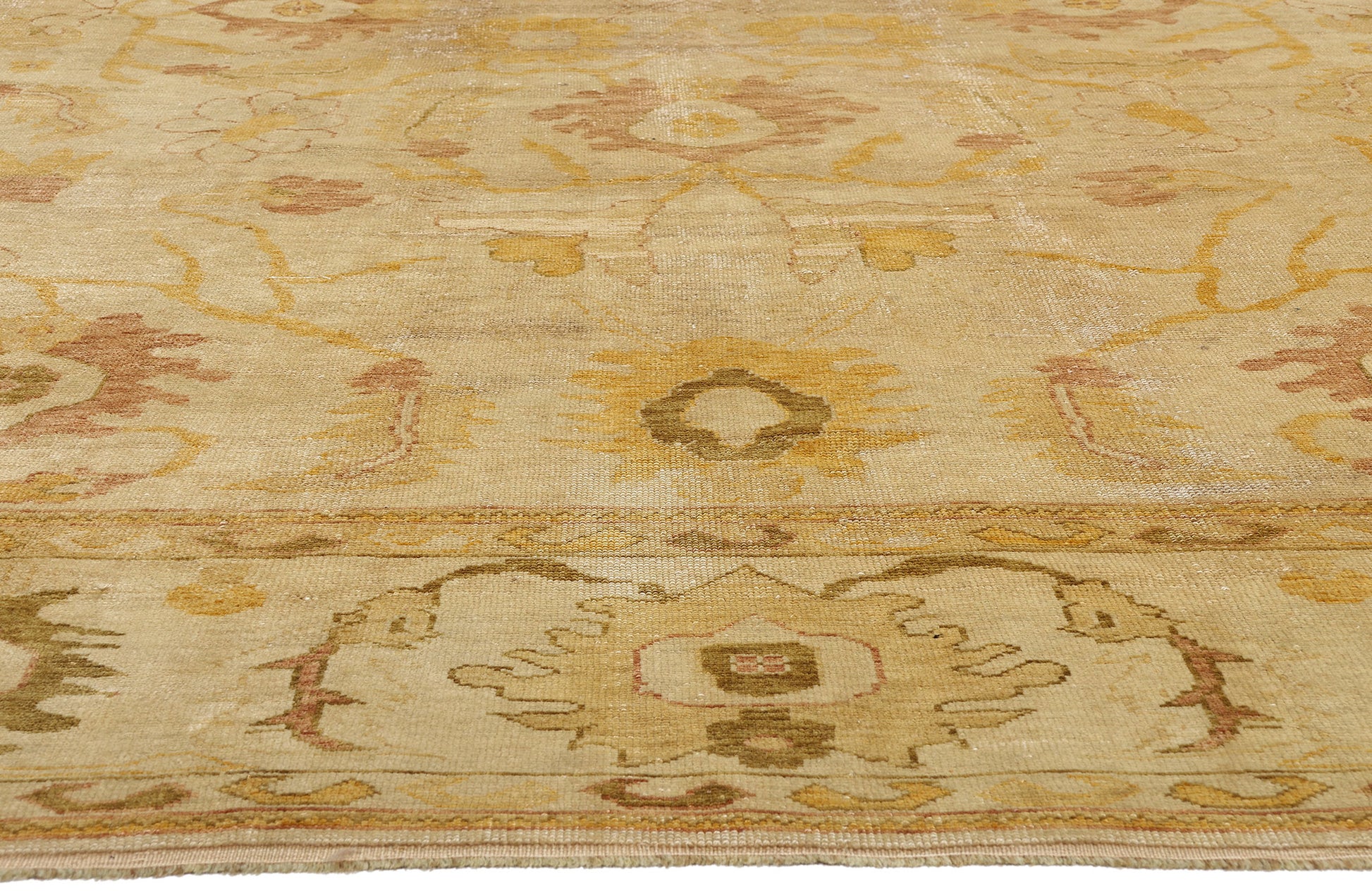 The Golden Harmony: A Vintage Turkish Oushak Masterpiece of Radiant Grace