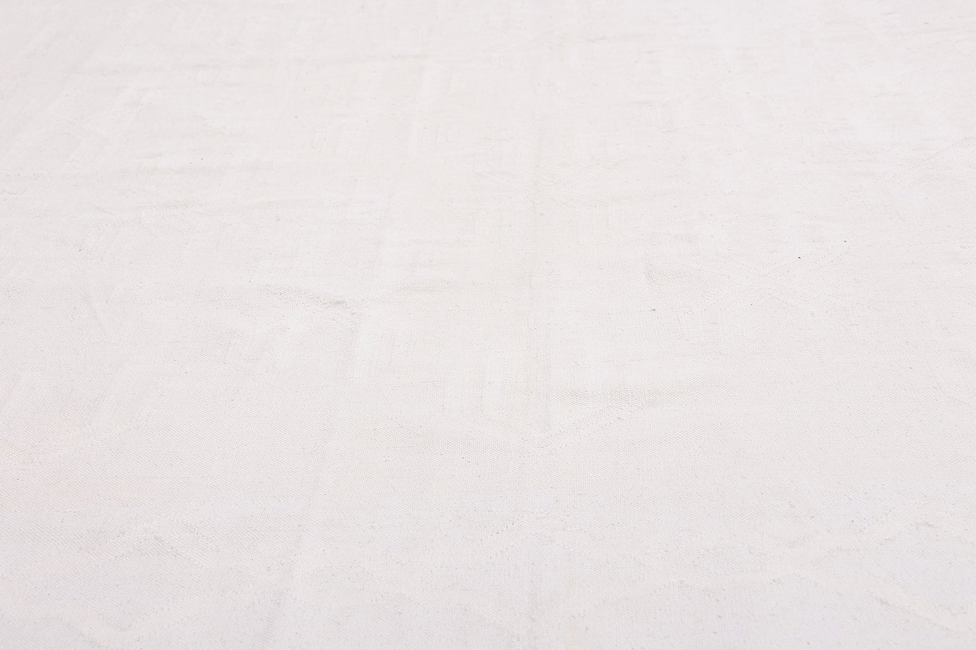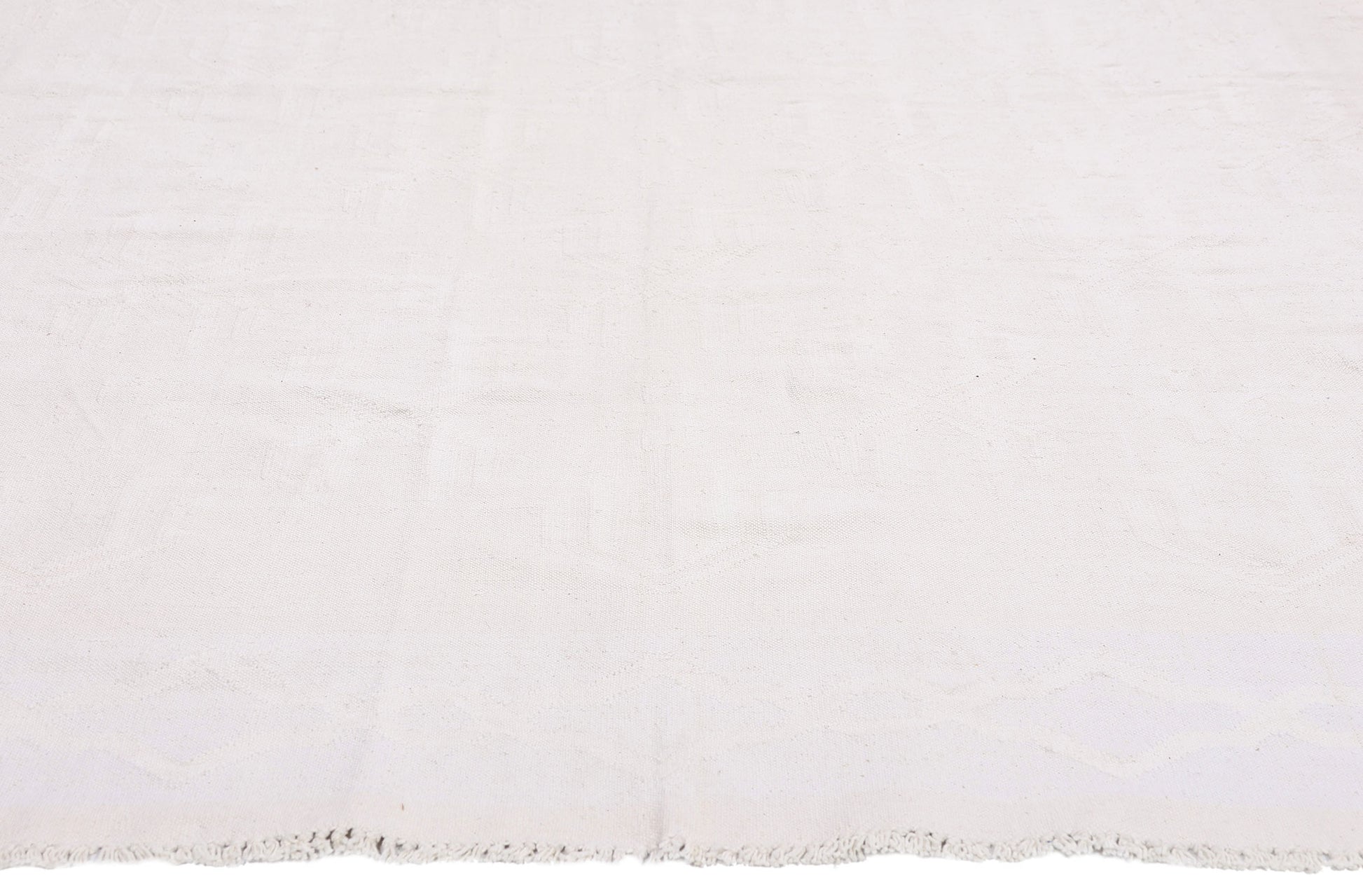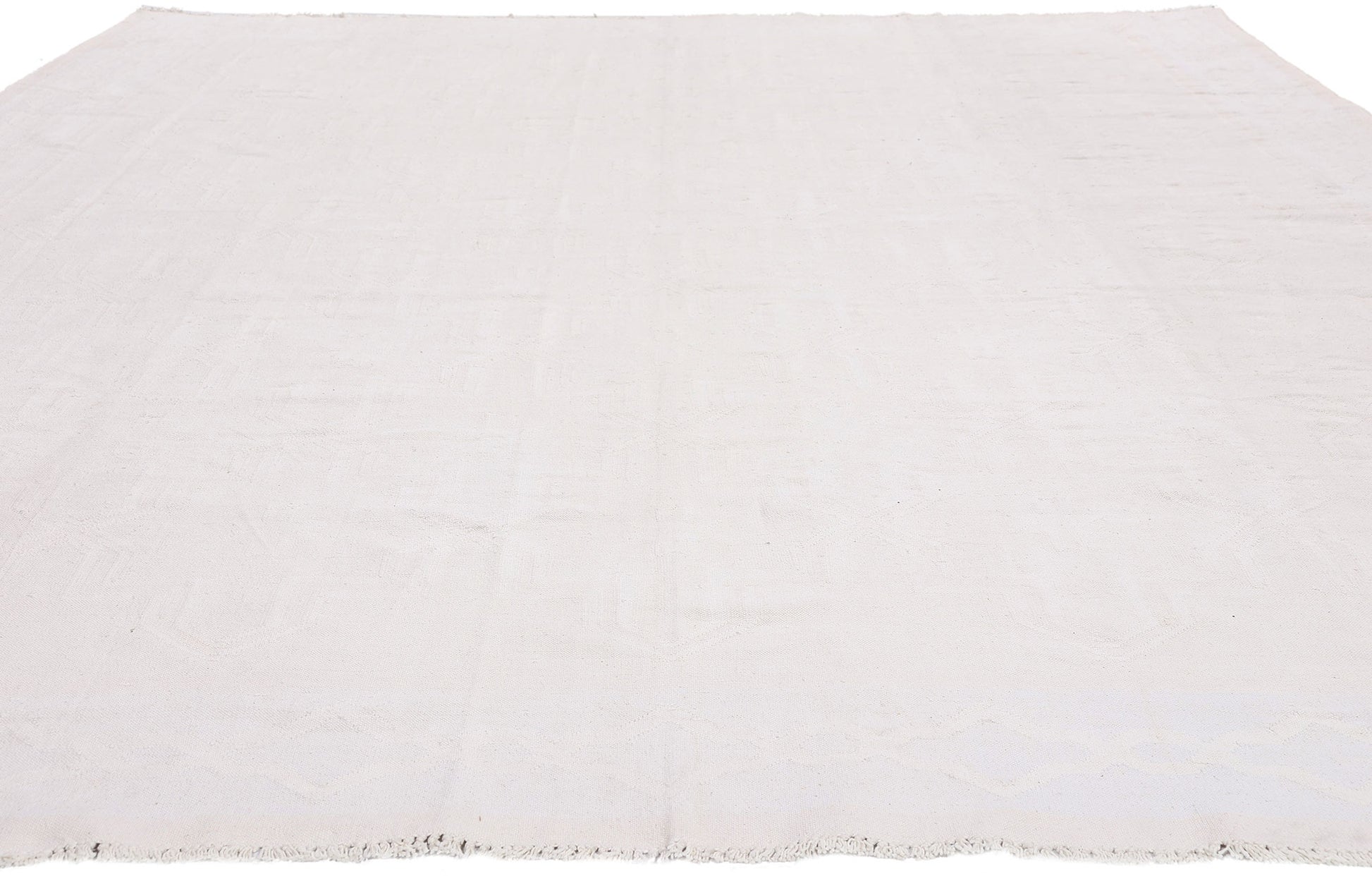 There is a rare confidence in restraint, and this handwoven cotton vintage Dhurrie embodies it with quiet authority. Rendered in a soft, luminous ivory field, the composition appears almost ethereal at first glance—an intentional whisper in a world of excess. This is not a piece that seeks attention; it commands it through subtlety, through the cultivated refinement that only the most discerning collectors truly appreciate. It speaks to a life curated with precision, where every object is chosen not for abundance, but for meaning.