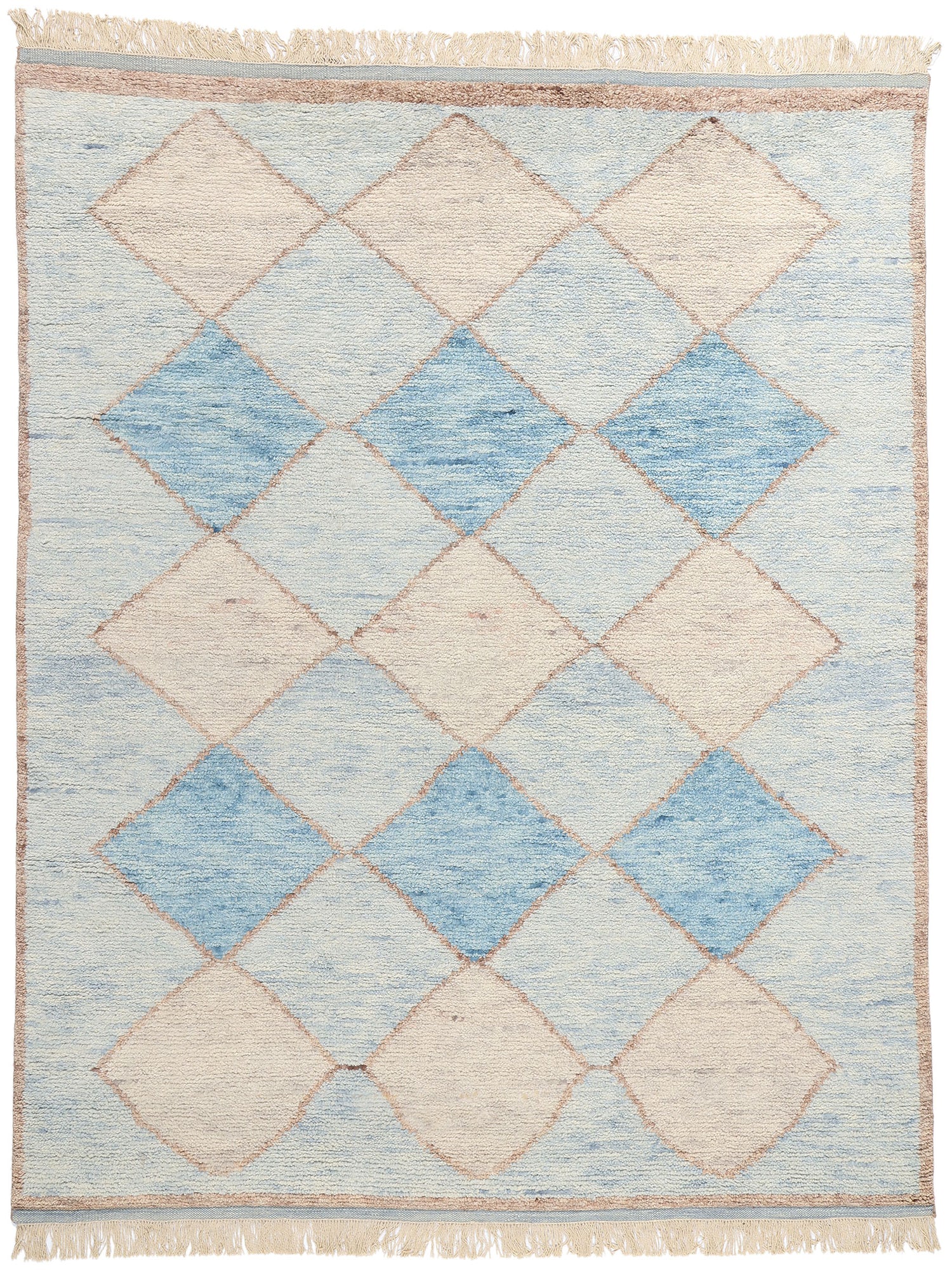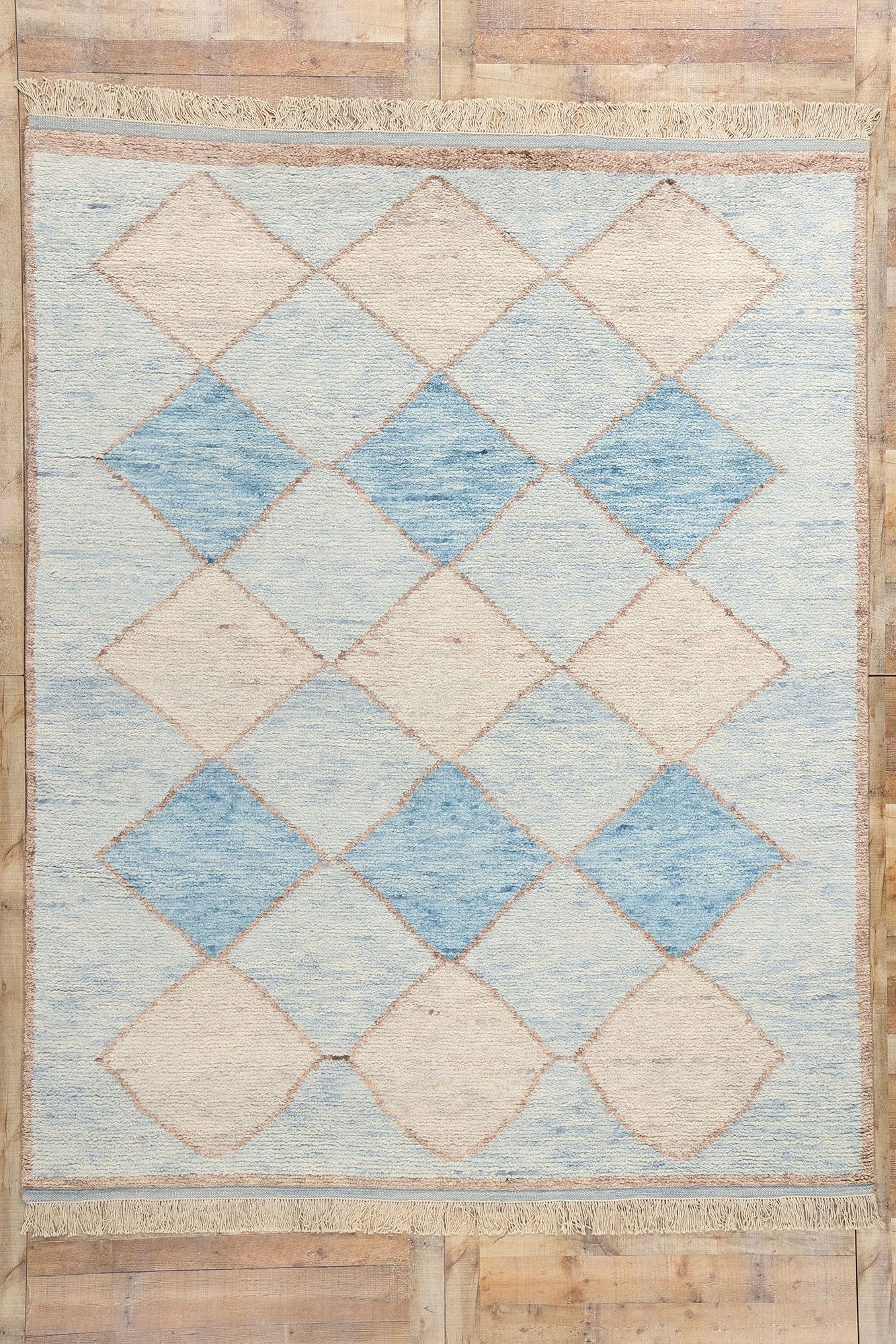 31237 New Azure Mirage Blue Diamond Moroccan Rug, 08'03 x 10'05.