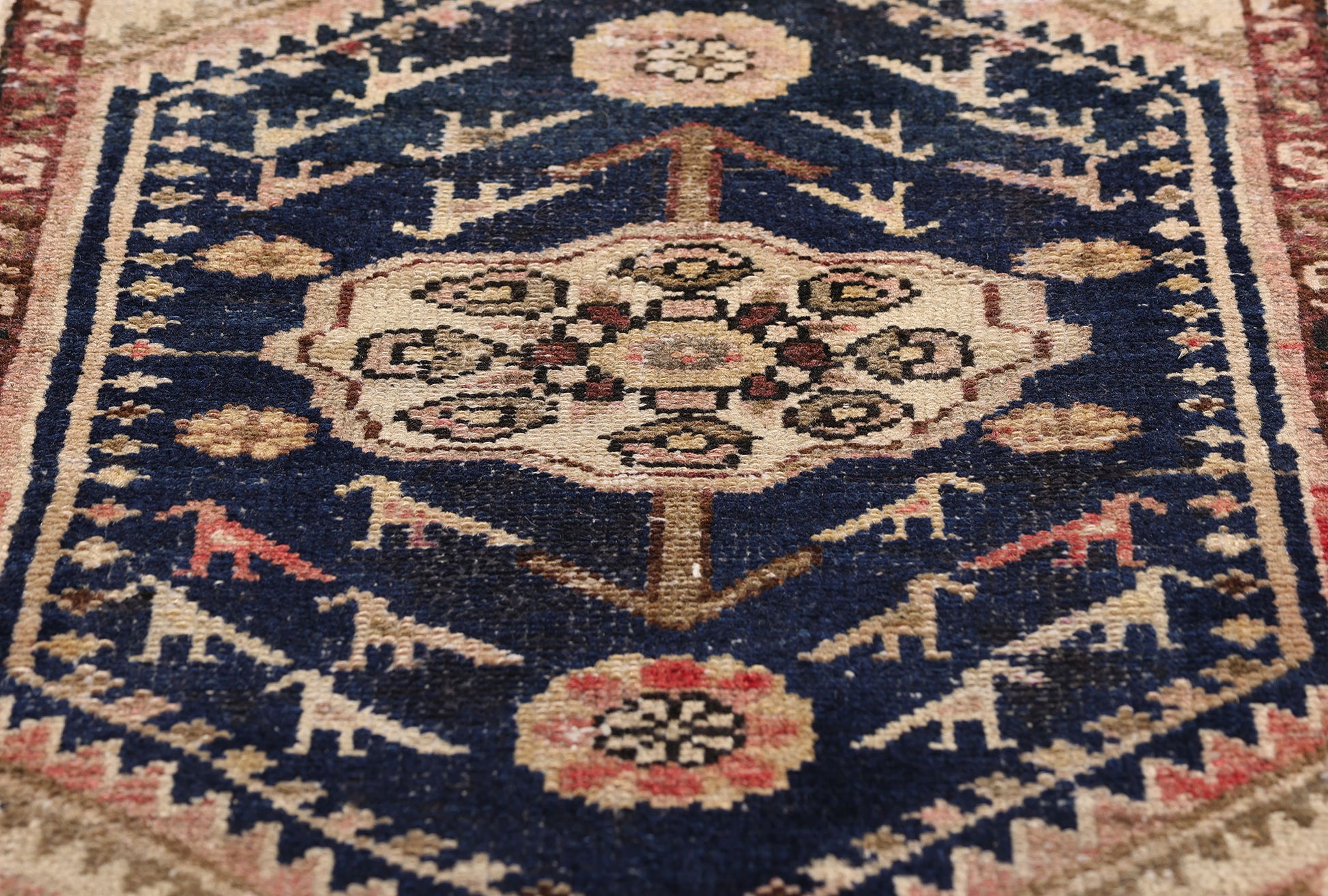 1 x 3 Navy Blue Antique Persian Hamadan Rug 61454
