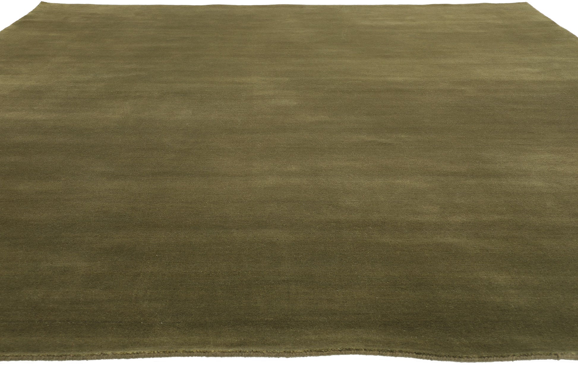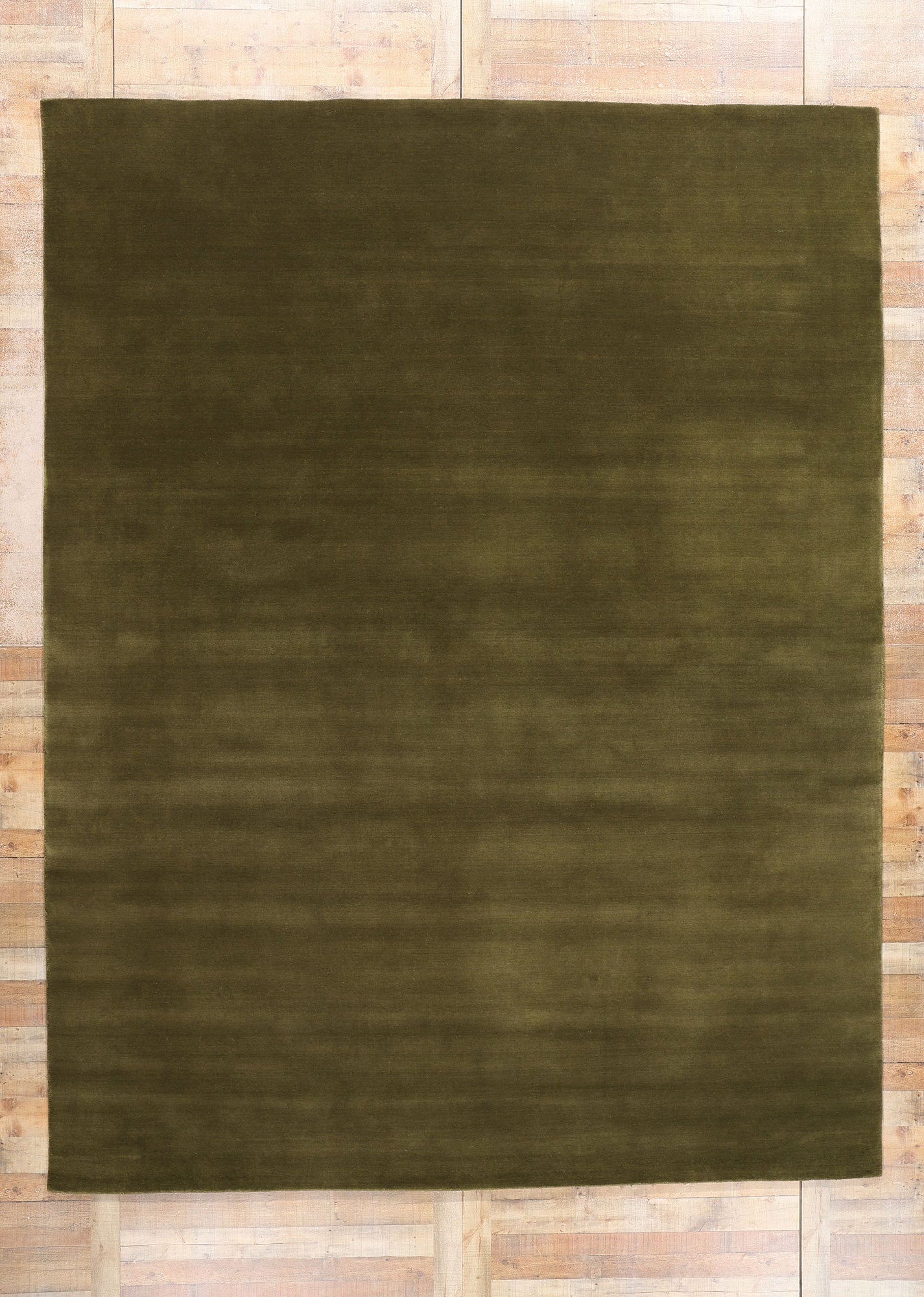 31155 New Solid Olive Green Modern Rug, 09'10 x 12'09.