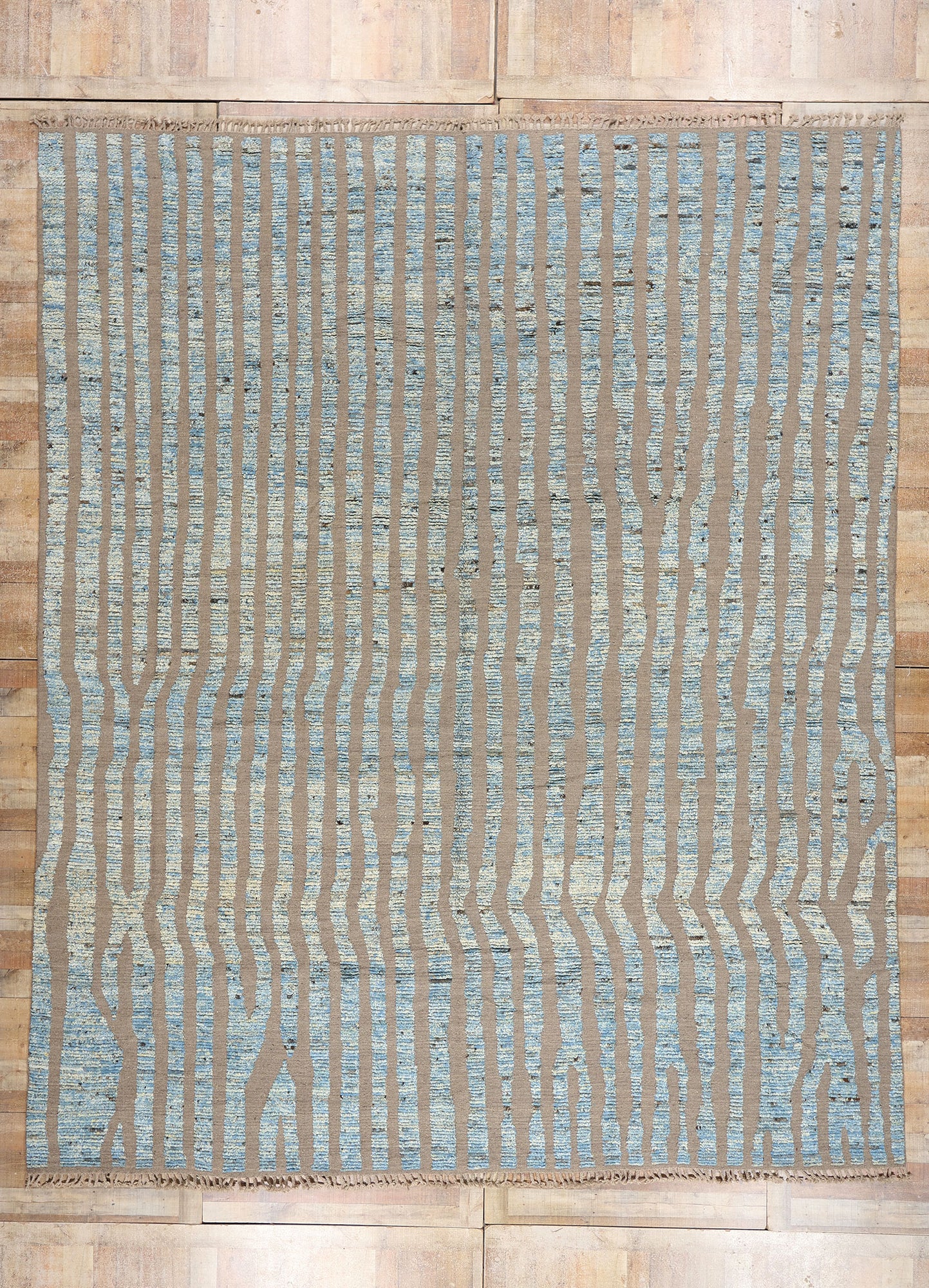 81154 New Modern Sculpted Waves Moroccan Rug, 12'04 x 14'11.