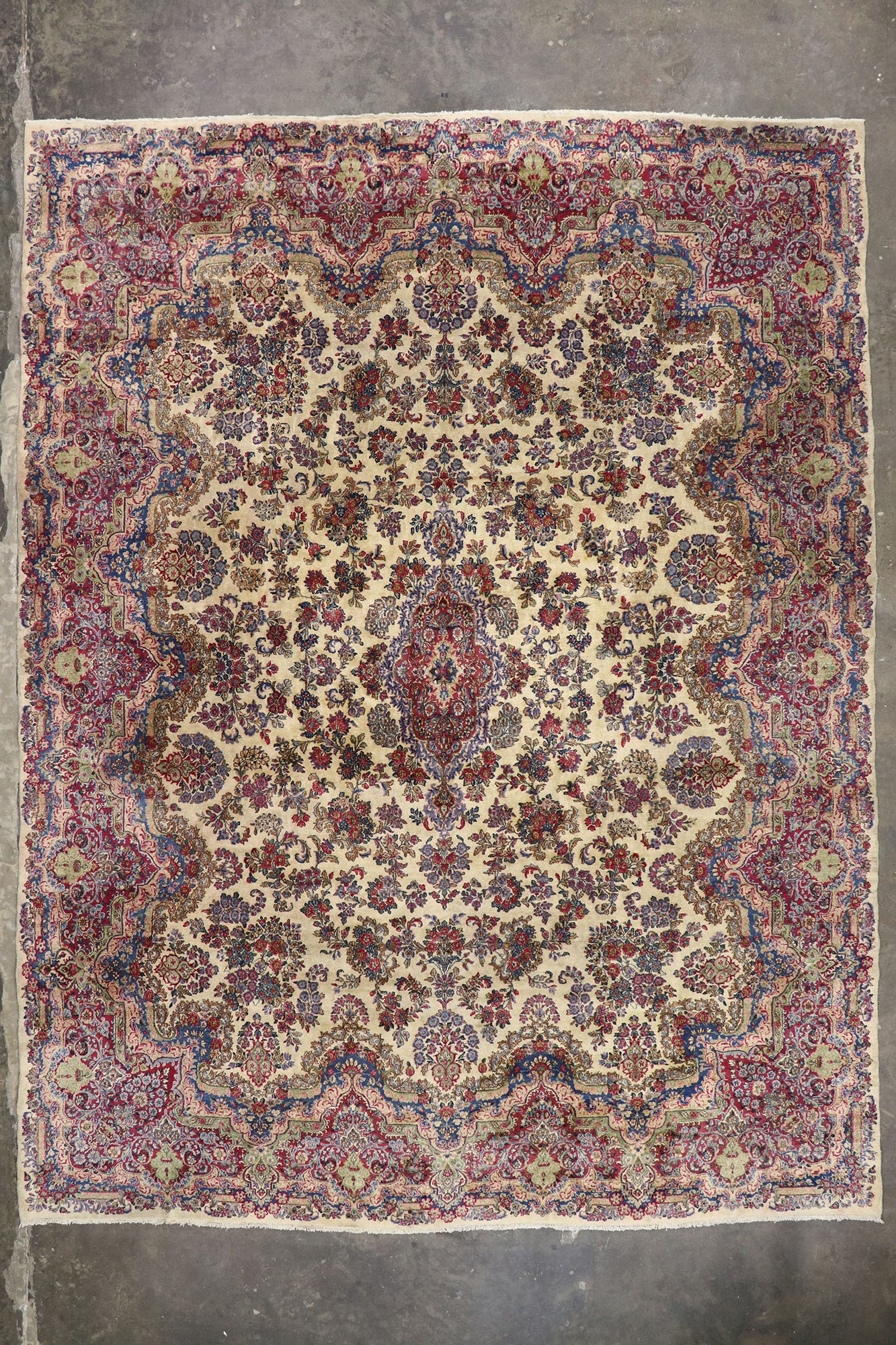 Whispers of Versailles: An Antique Persian Kerman Palace Rug of Aristocratic Grace