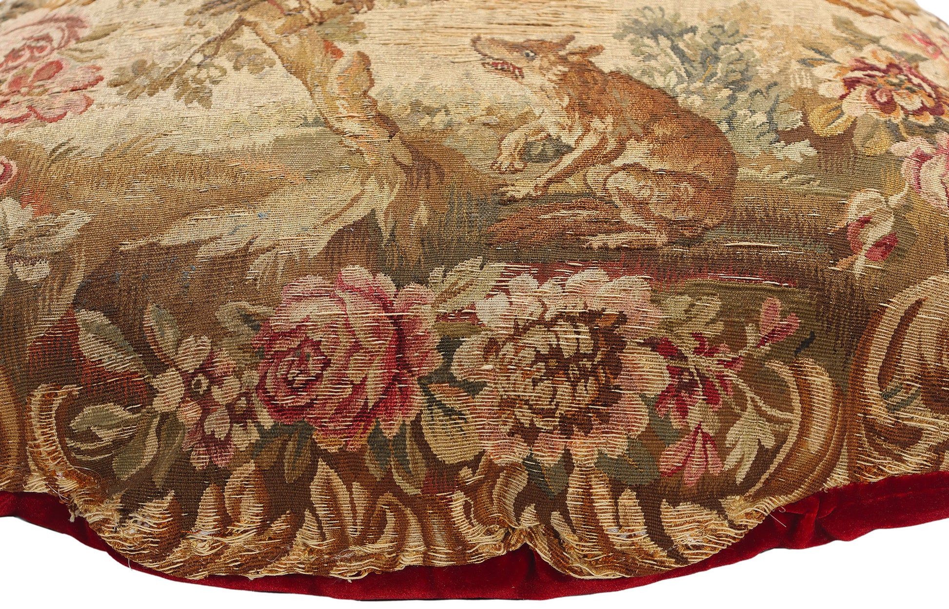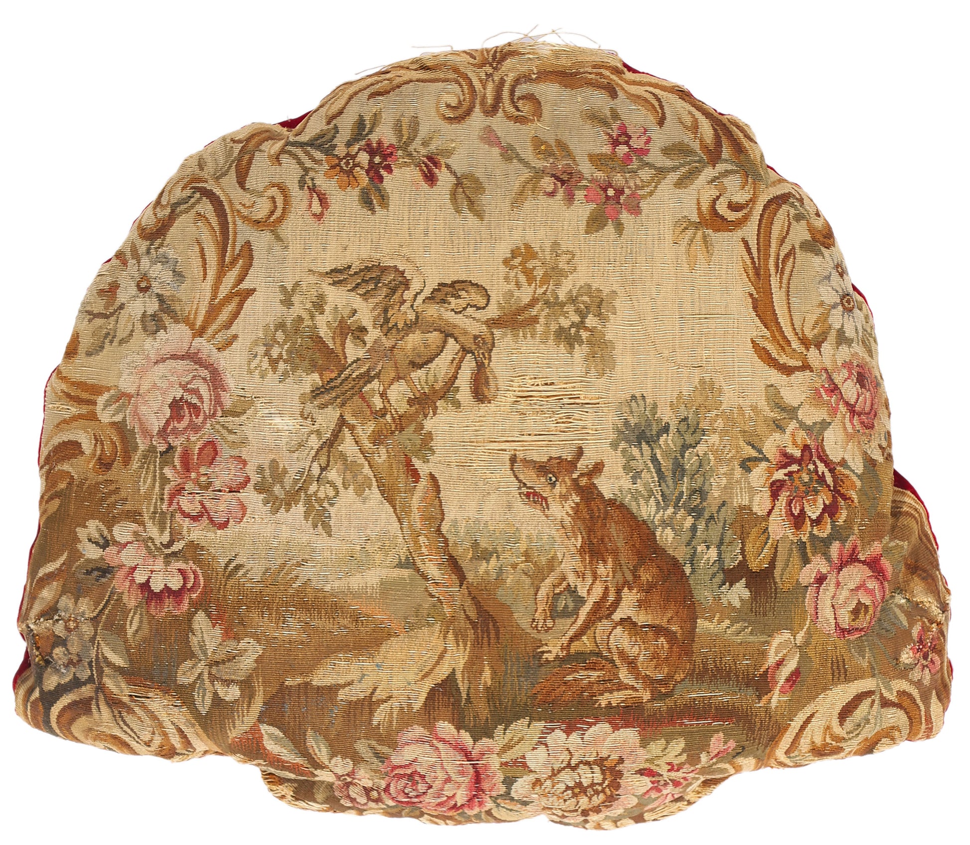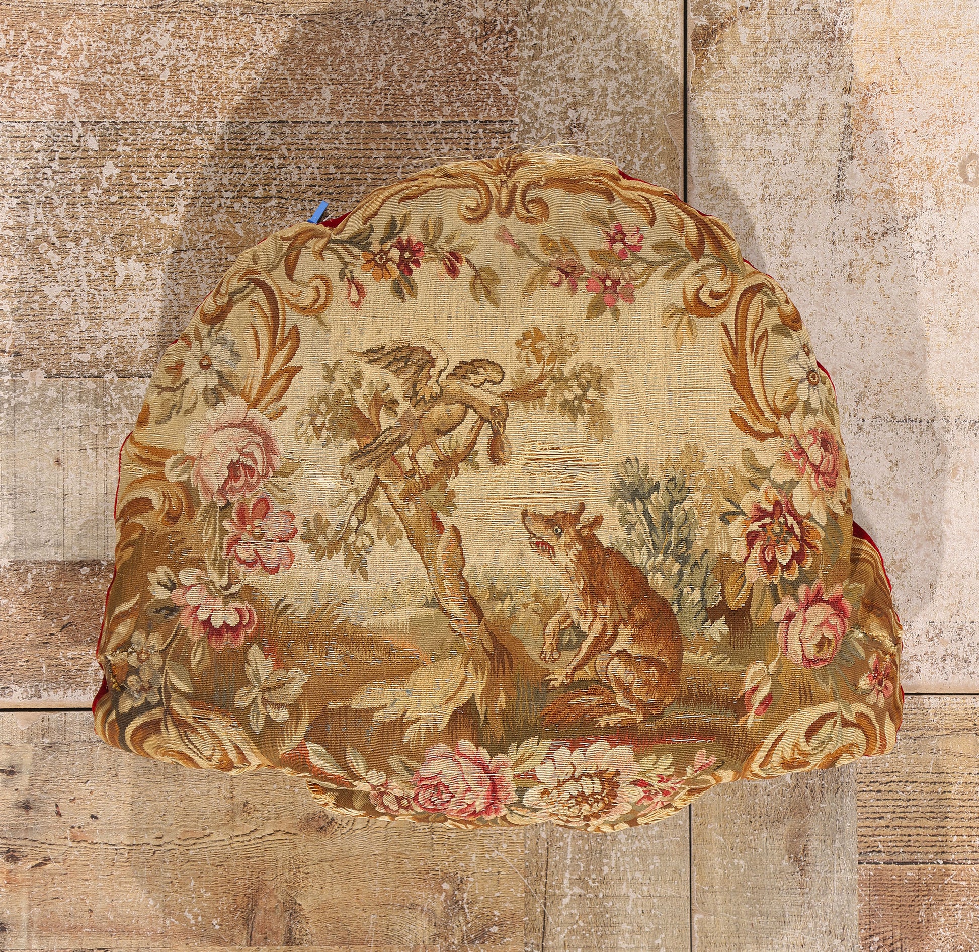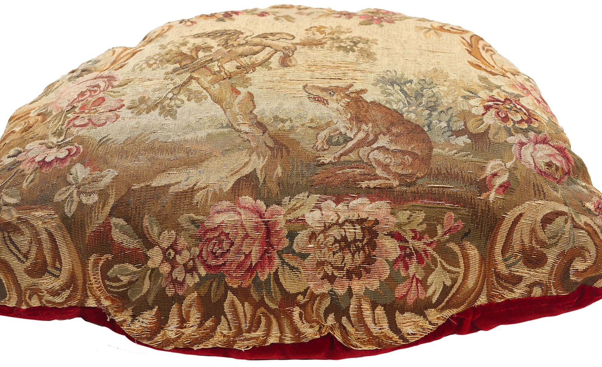 More than a decorative object, this antique Aubusson pillow is a textile reverie—an emblem of refinement, storytelling, and the enduring romance of French decorative arts. It invites one to lean close and listen to the threads, where fable meets florals, and nature’s theater is forever suspended in silky soft wool. In this small woven relic, the spirit of 19th-century France endures, gentle and wise, as timeless as the tale it tells.