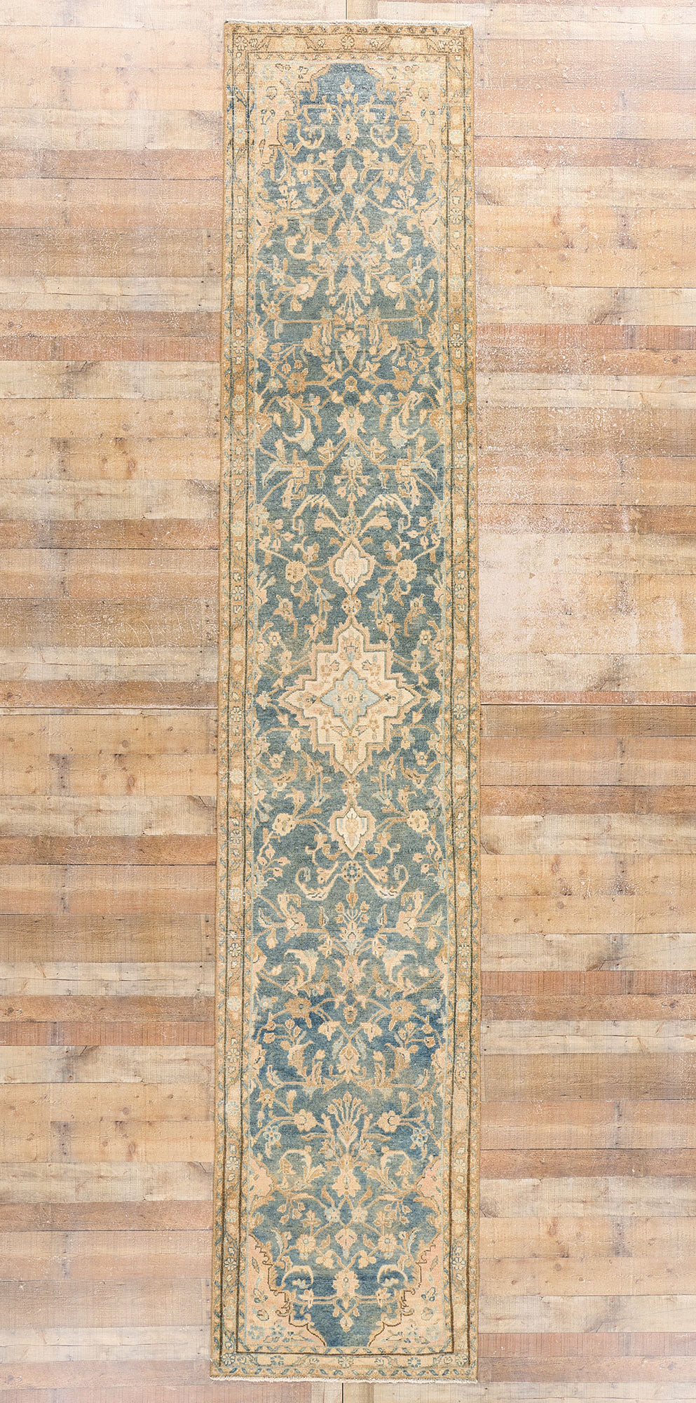 61328 Distressed Antique Blue Persian Malayer Rug Runner, 02'11 x 14'11.